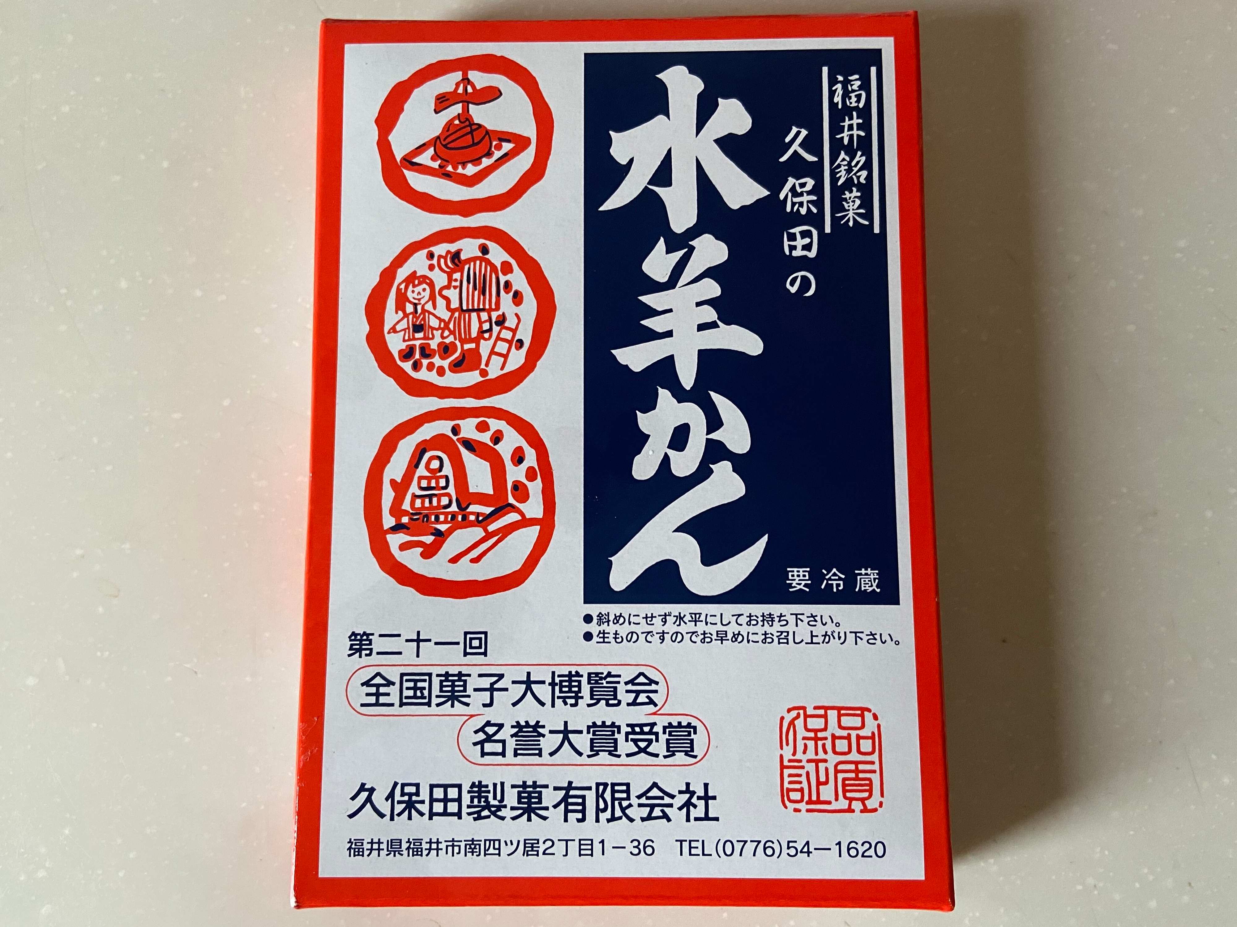 成城石井の冷蔵コーナーで見つけた「久保田の水羊かん」(購入時:647円)。福井県の久保田製菓という会社が製造している水羊かんです。