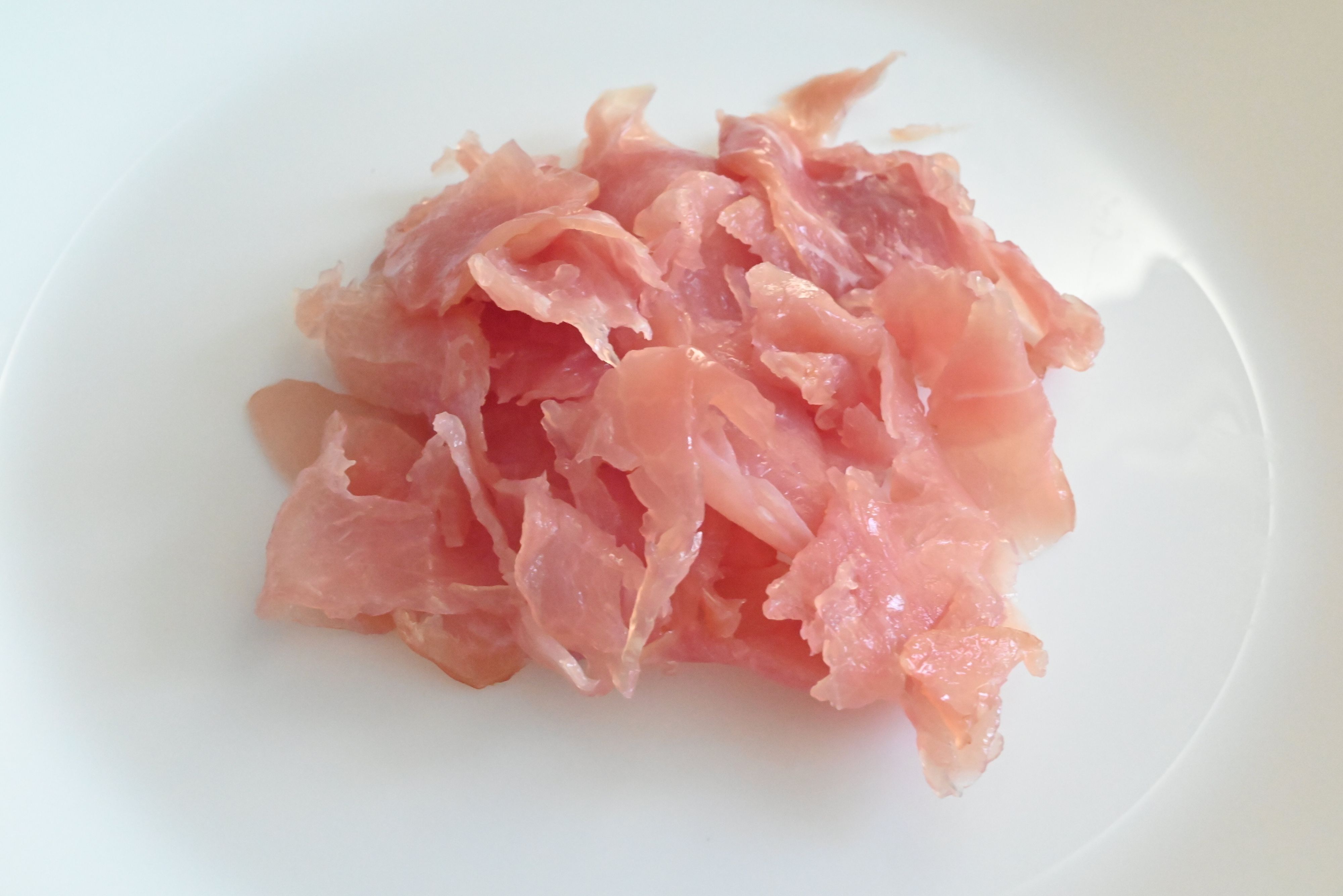 袋を開けると薄く切り落とされた生ハムがくっついて入っています。