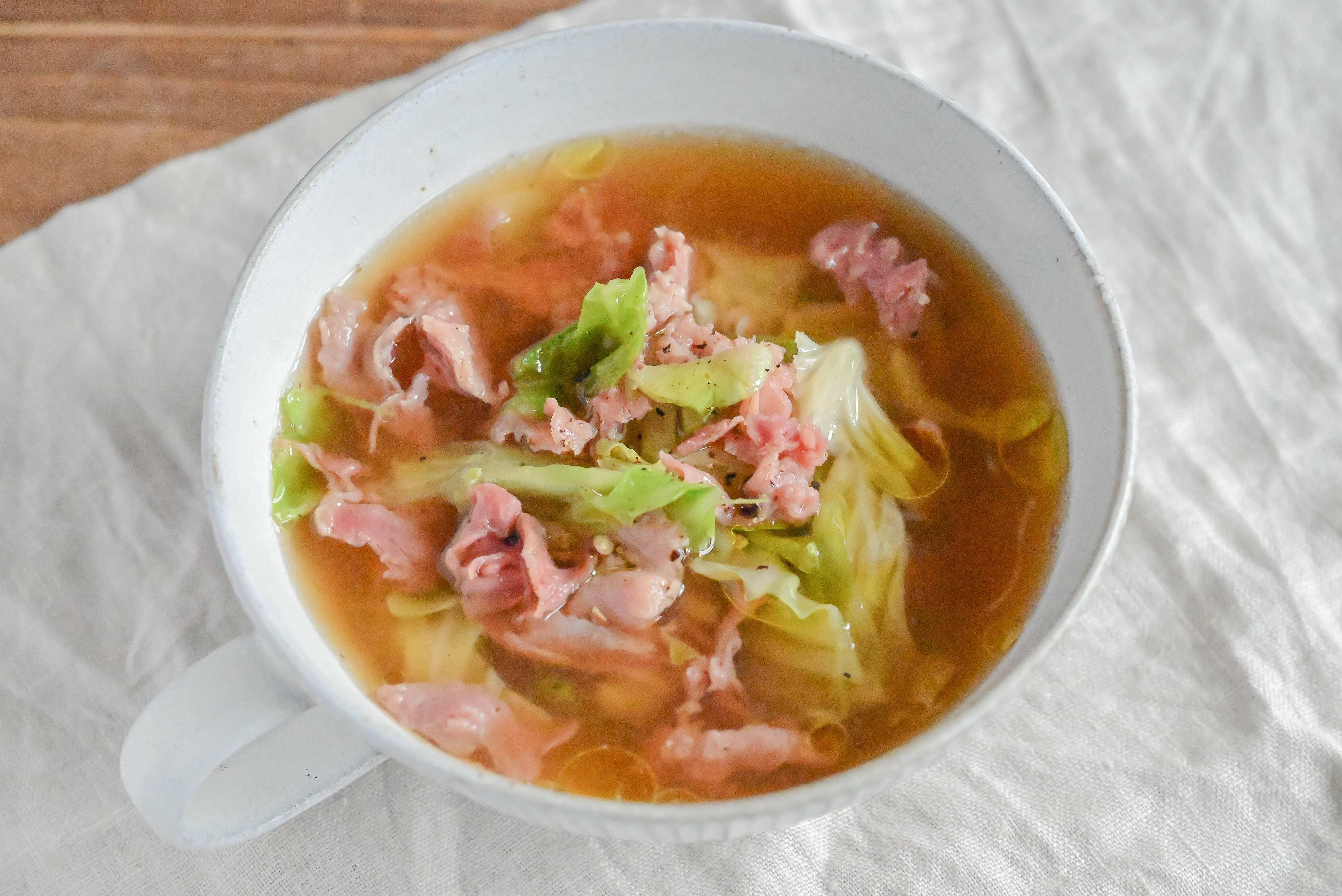 レンチンで簡単♪生ハムとキャベツのスープ