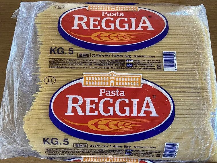 こちらもよくリピートしている「スパゲッティ5kg」(購入時:1,134円)。以前よりだいぶ値上がりしてしまったのは残念ですが、それでもこの量でこの価格はリーズナブル。