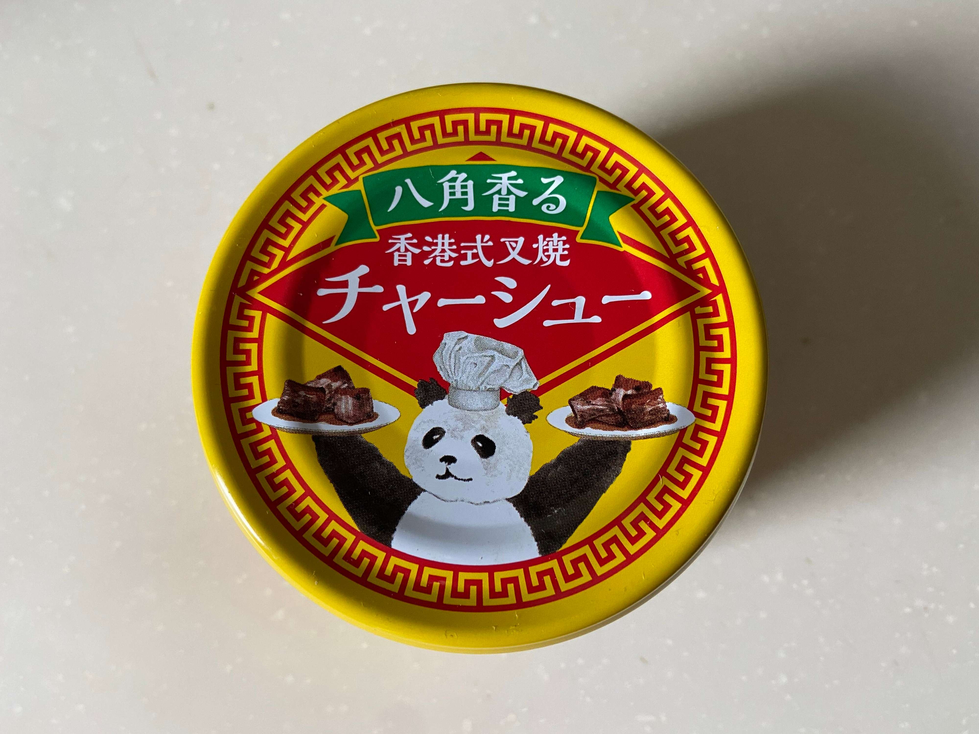 パンダのシェフがとってもかわいらしいデザインの「八角香る 香港式チャーシュー」(購入時:383円)。缶詰に入ったチャーシューってとっても珍しいですよね。