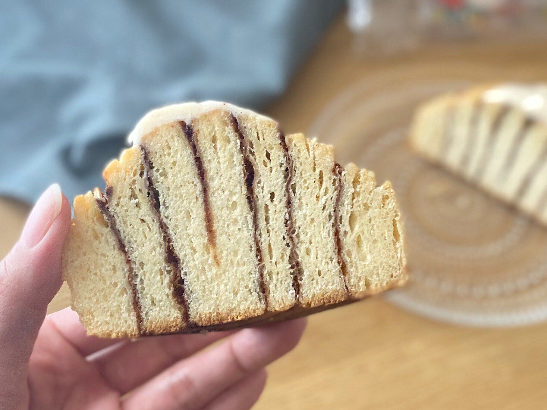 食べる前はスパイシーな香りが際立っていましたが、食べてみるとスパイス感は強すぎず程よく香る程度。シンプルなパン生地とレーズンの甘みともよく合っています。コーティングのアイシングまでたどり着くとさらにスパイス感がアップ。定番のシナモンロールより大人テイストな味わいになっています。