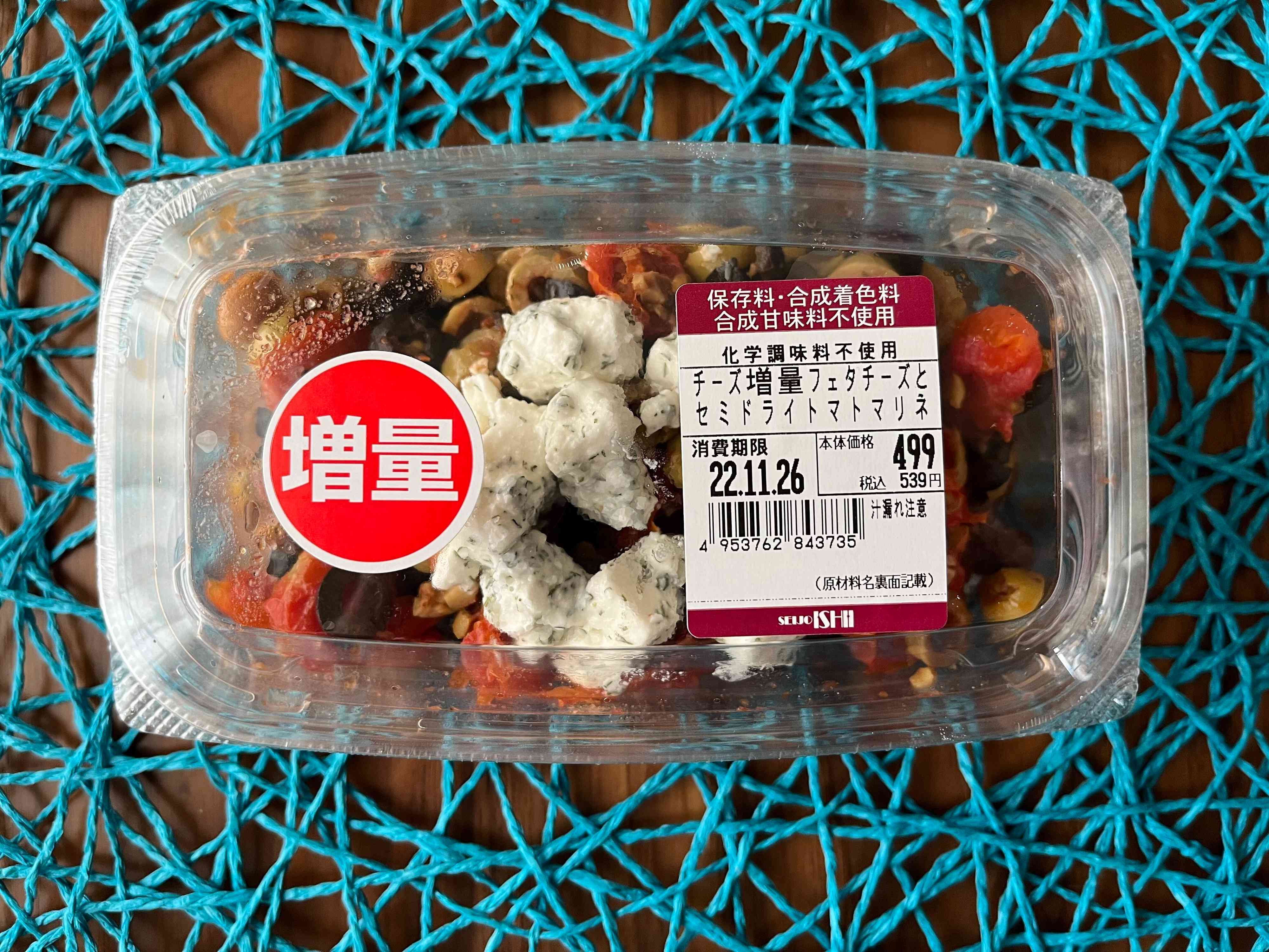 私が成城石井のデリの中で最もパンに合うと信じてやまないのが「フェタチーズとセミドライトマトマリネ」です。