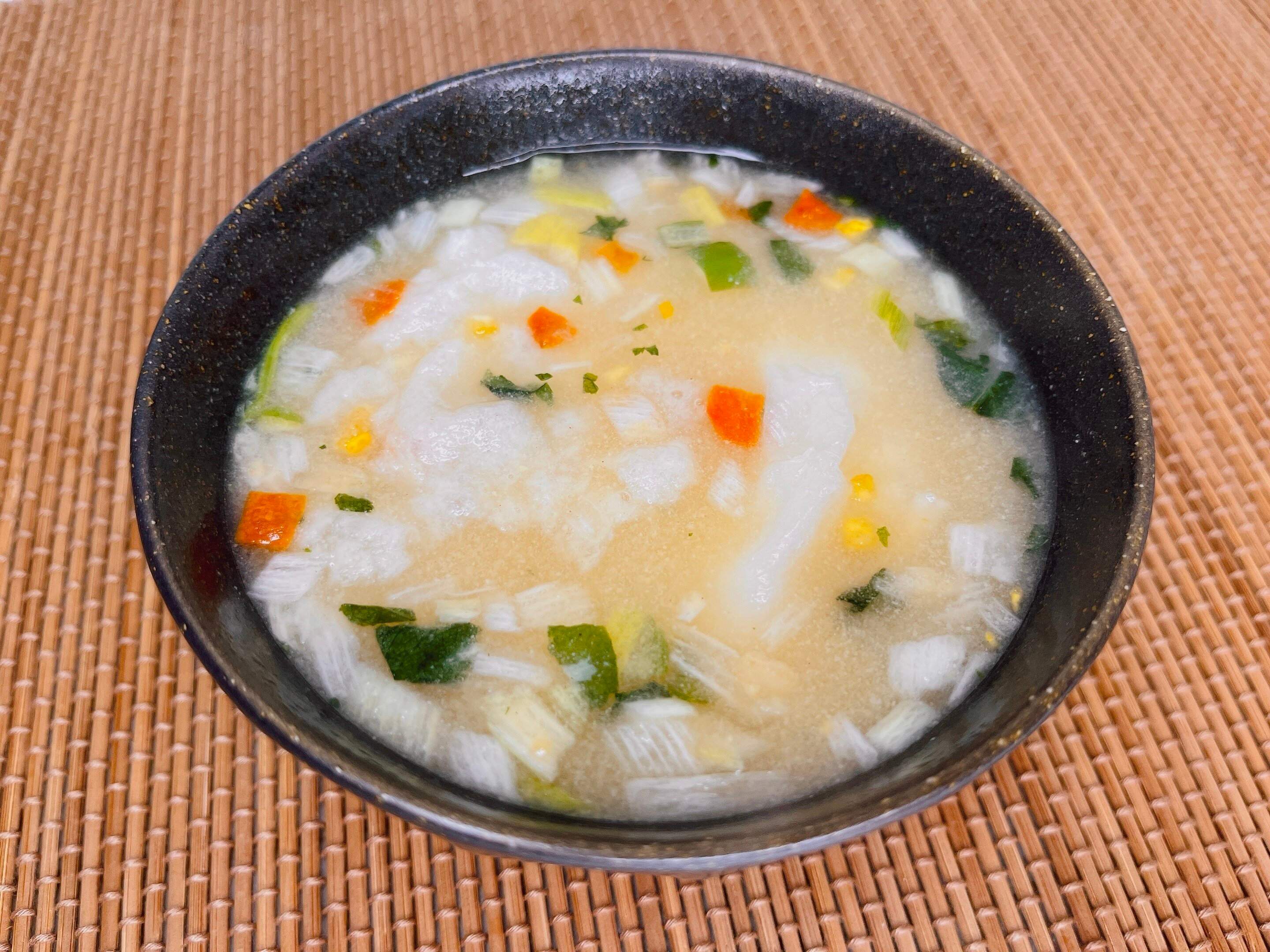 具材は乾燥ねぎ、乾燥人参、乾燥柚子、乾燥三つ葉の4種類が入っています。