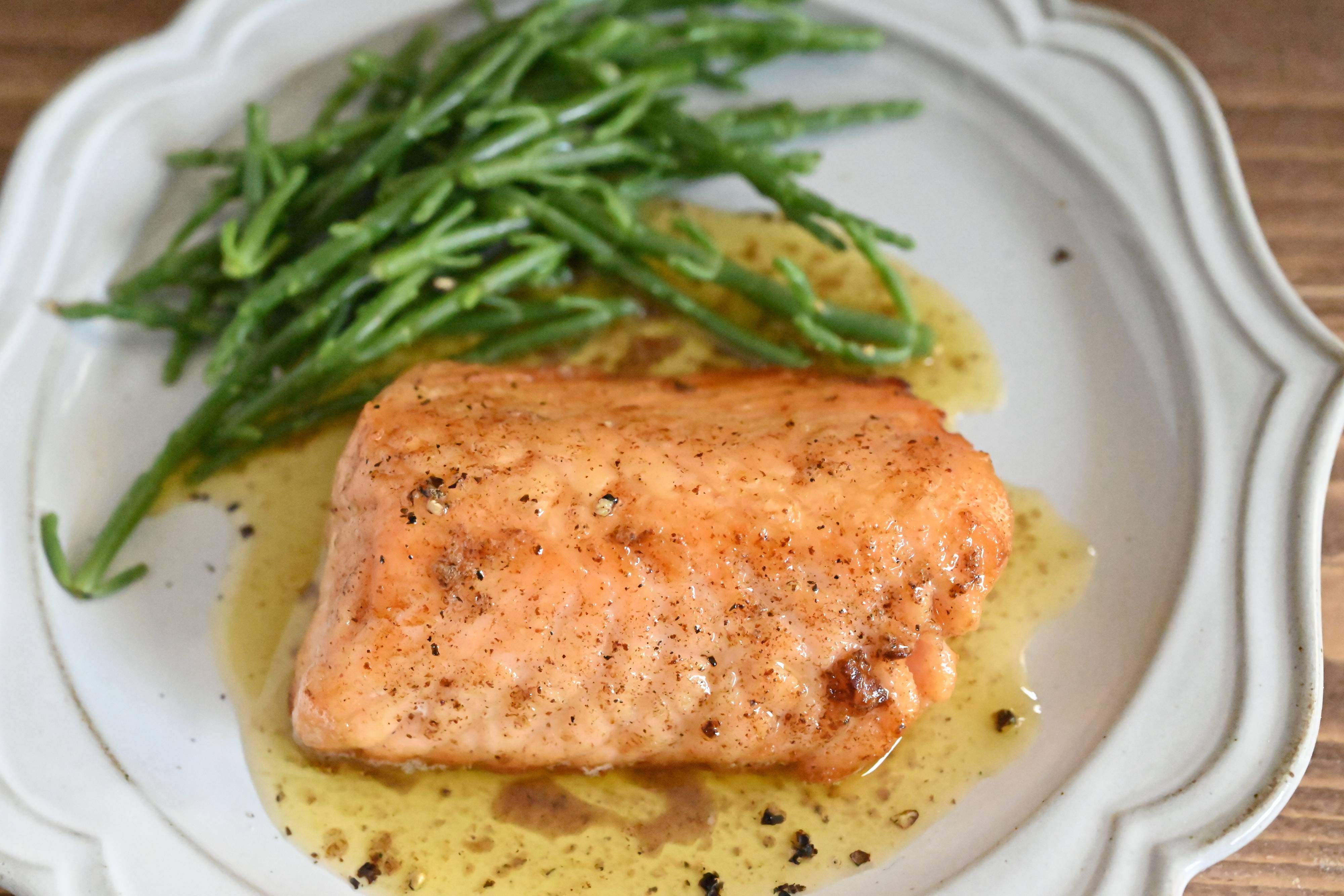 厚みのあるサーモンで作る!サーモンのバターソースがけ