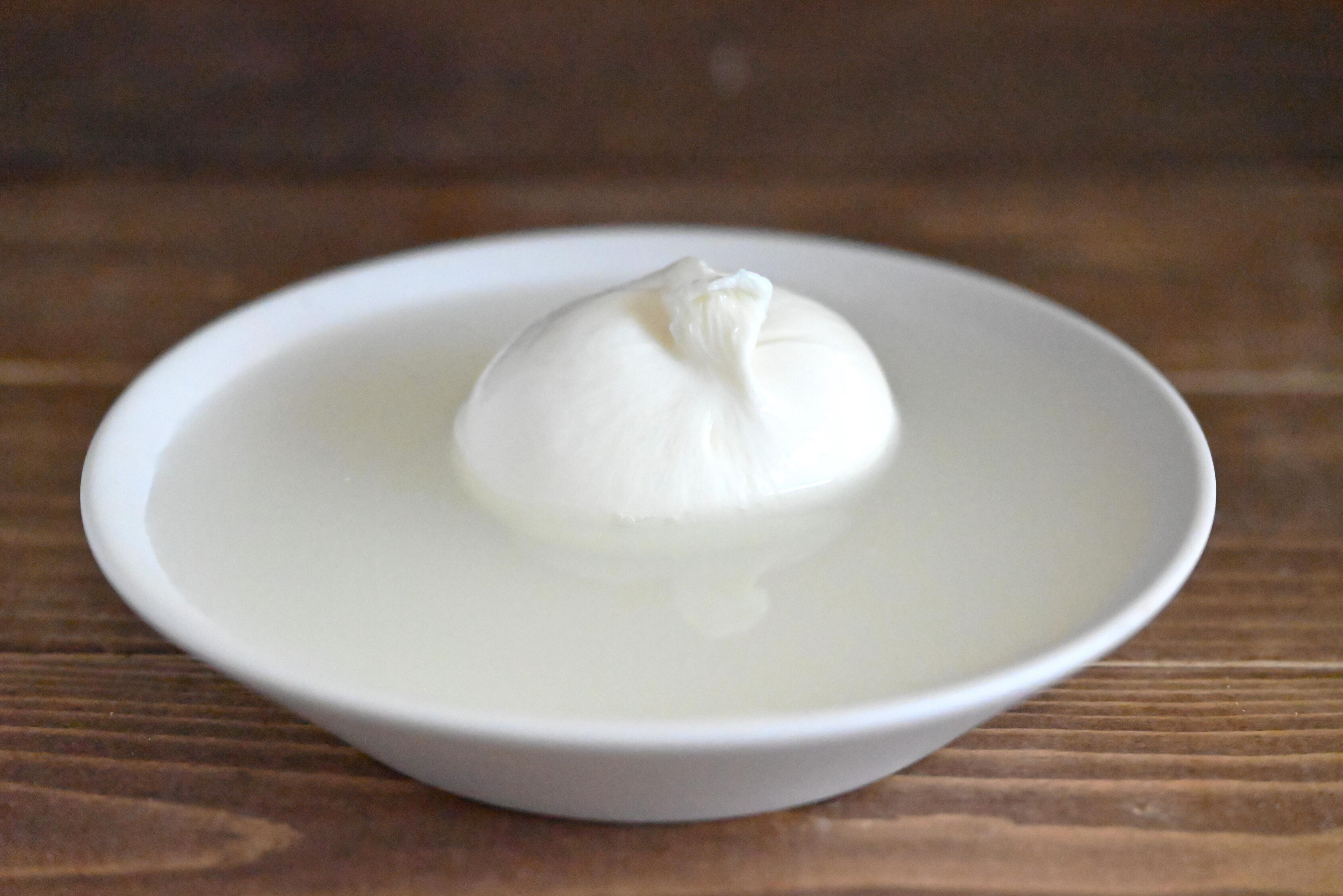 袋の中には水に浸かったブラータが1個入っています。
