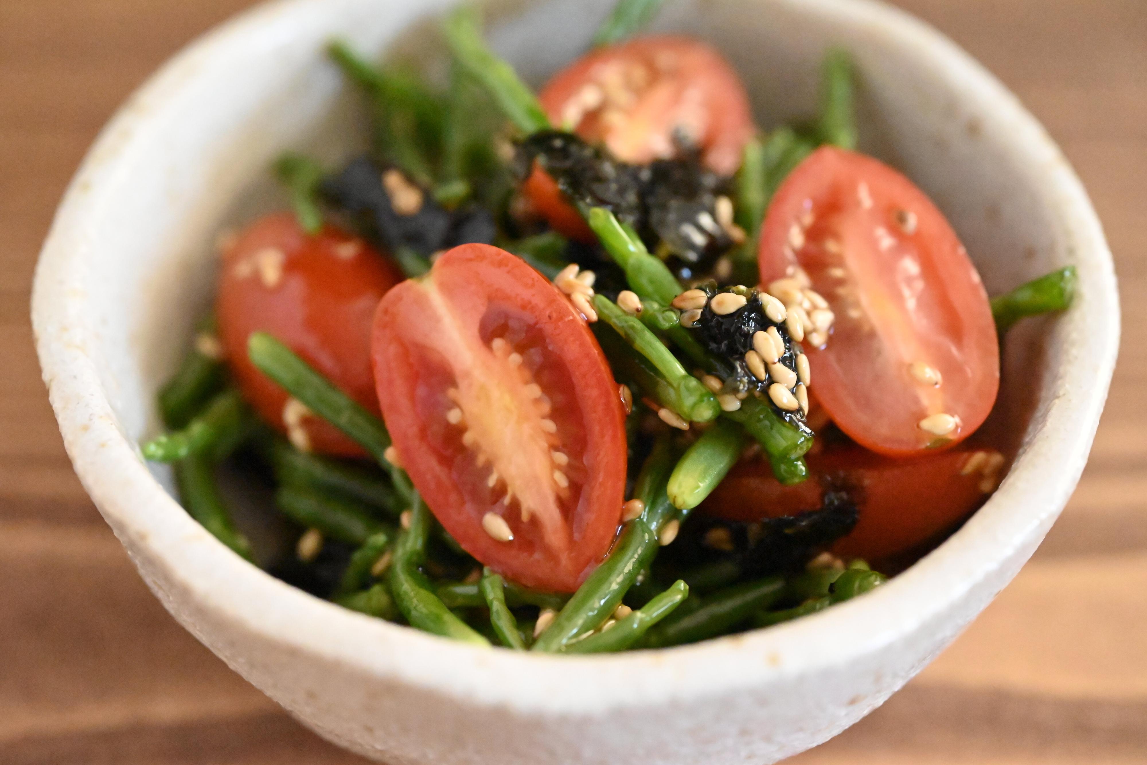 切って混ぜるだけ!シーアスパラガスとトマトのごま和え