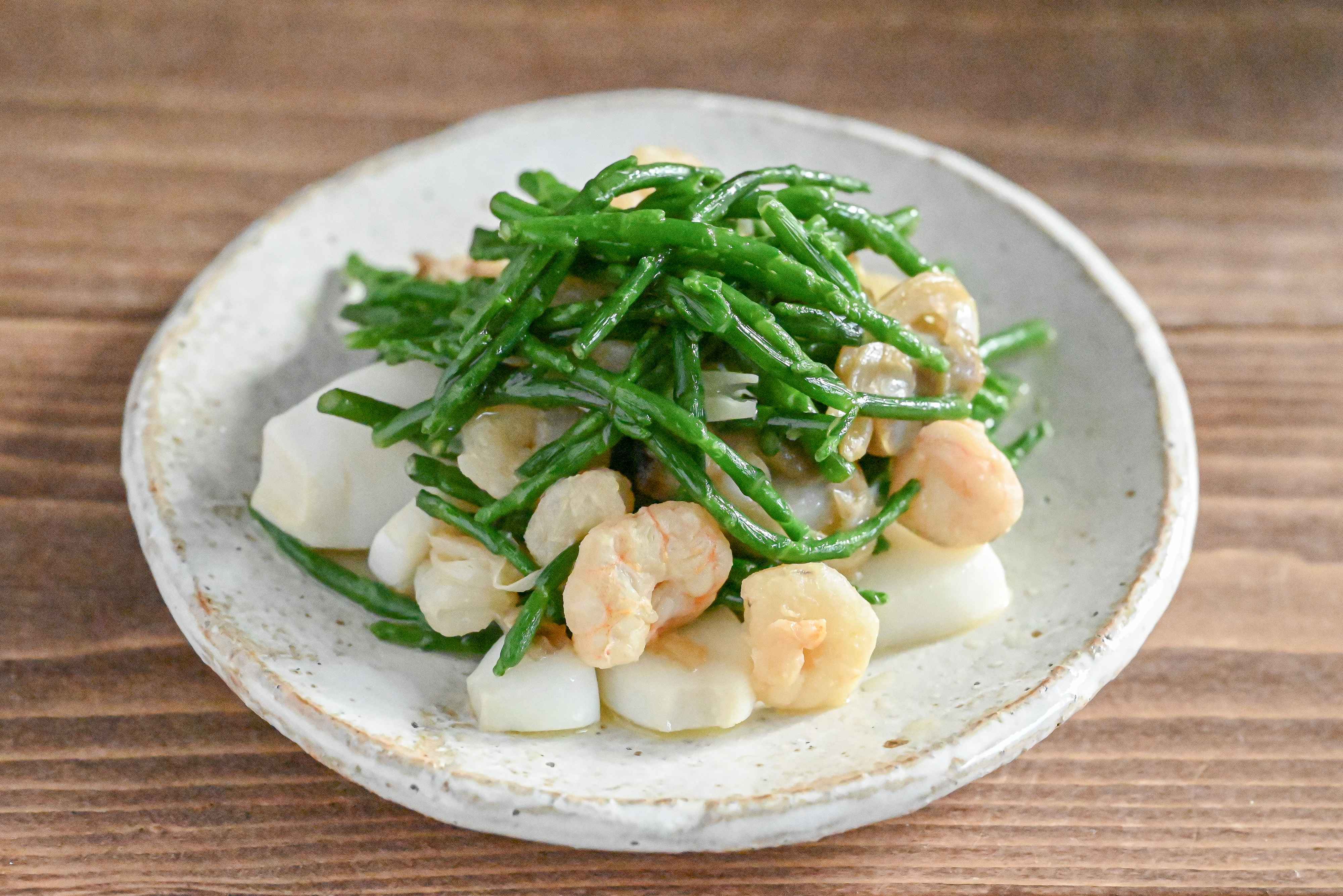 シーアスパラガスの塩気があるので、少ない調味料でもおいしく仕上がりますよ。