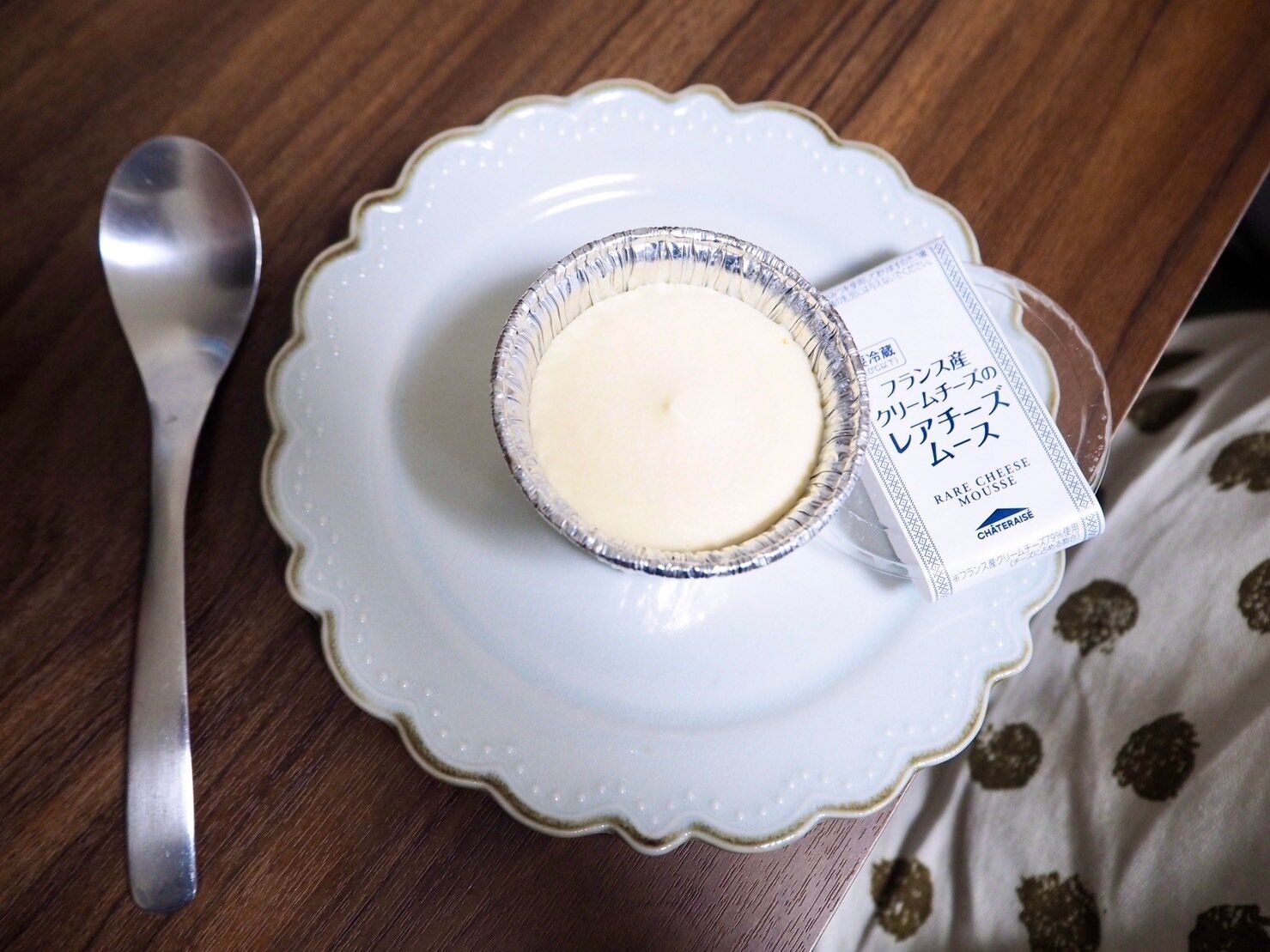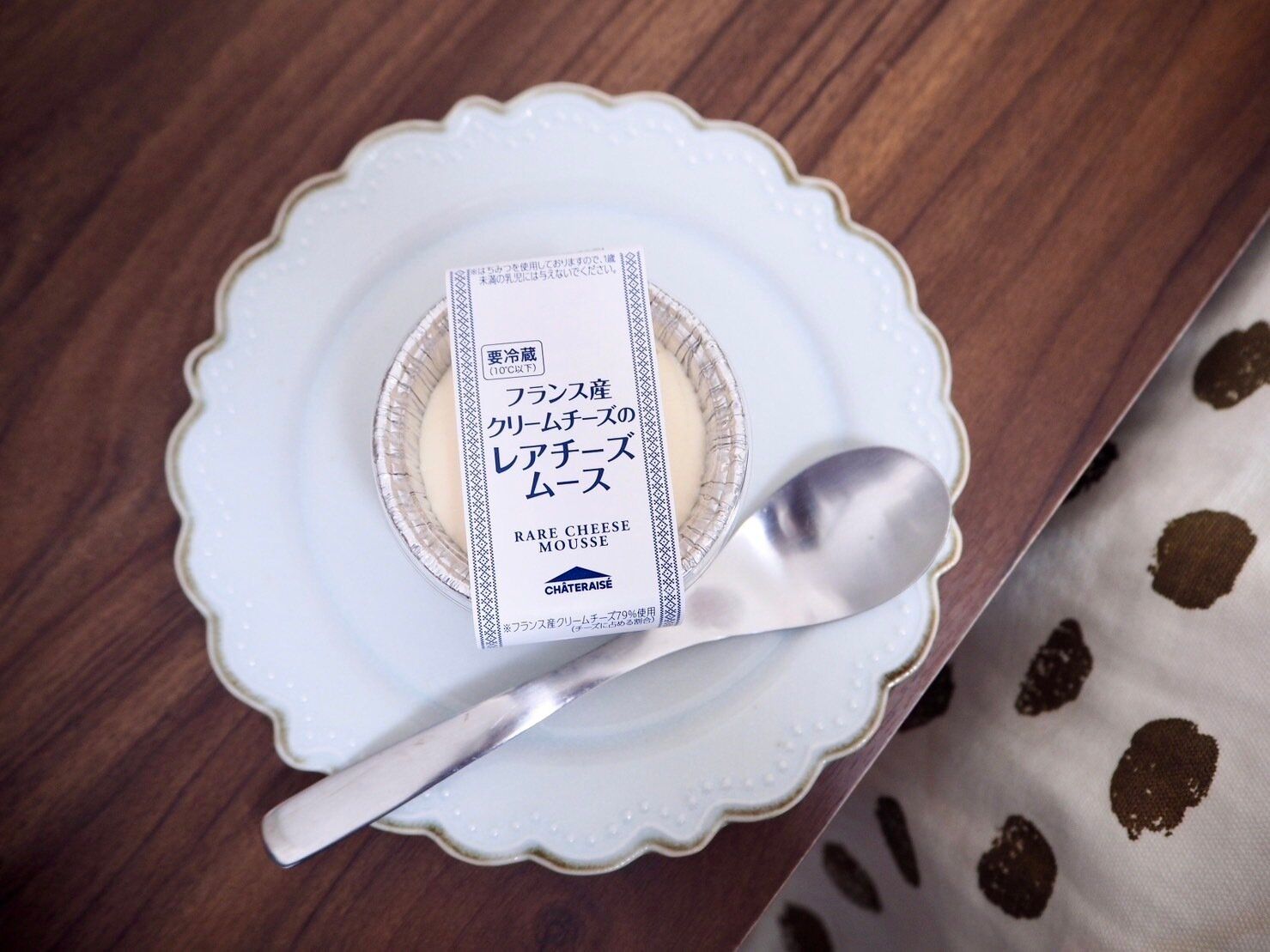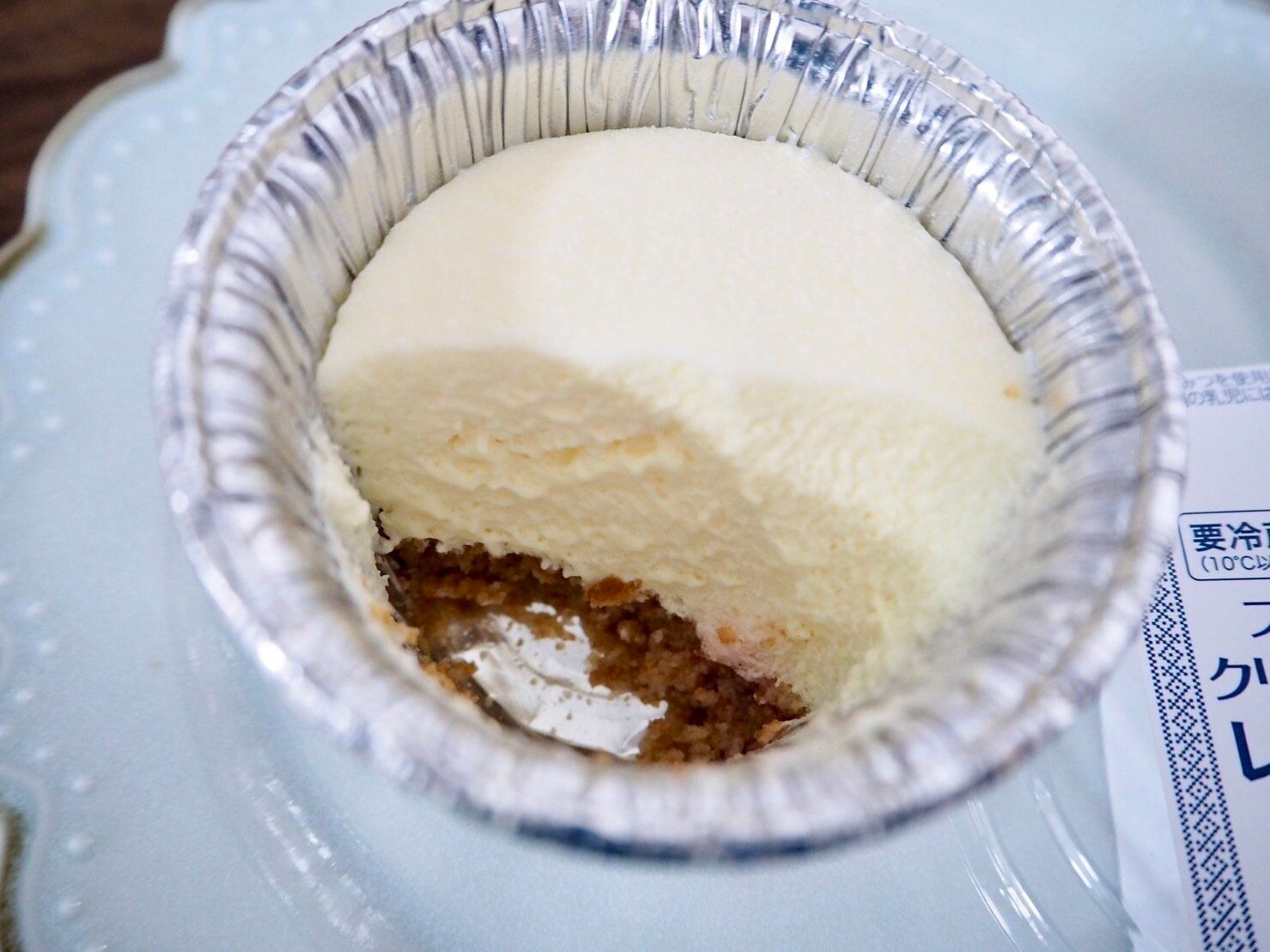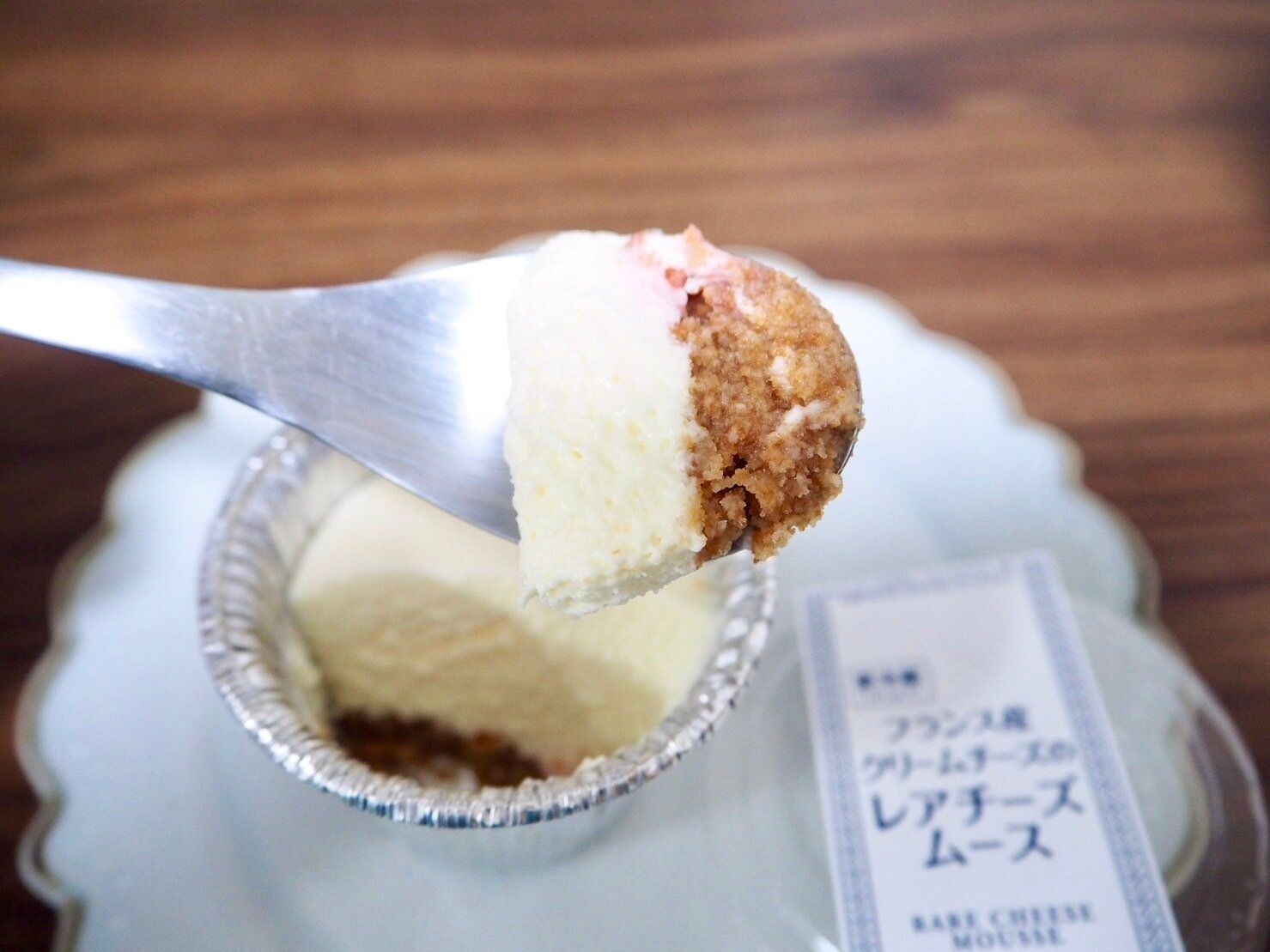 アルミカップの中に真っ白なレアチーズムースがたっぷりと入ったこちらの商品は、プリンやシュークリームと一緒に冷蔵庫で販売されていました。