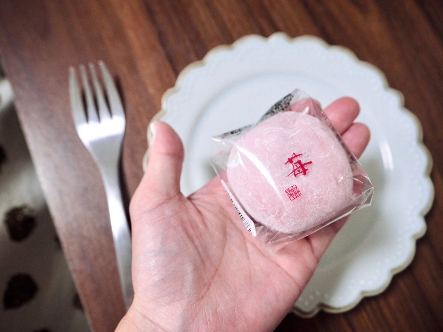 和菓子コーナーに常温で販売されているこちらの苺大福は、手のひらにおさまる小ぶりなサイズ感。