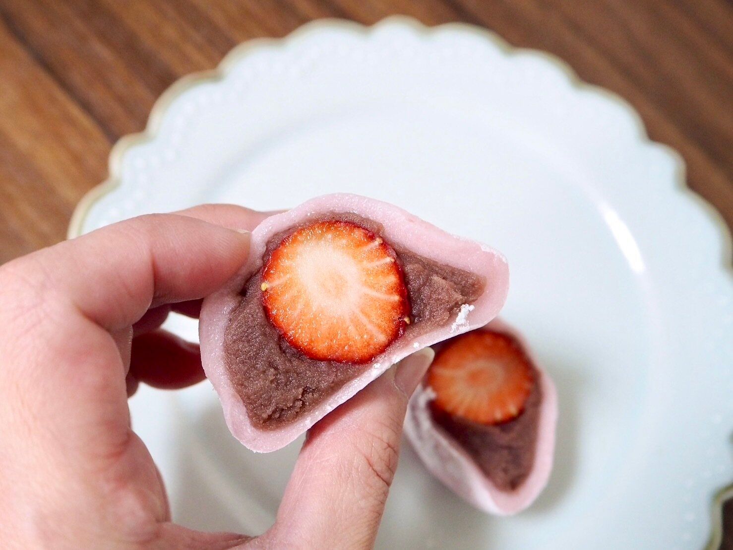 中に苺が隠れている大福は、華やかな苺のスイーツの中では目立たないかもしれませんが、おいしさは間違えありません。