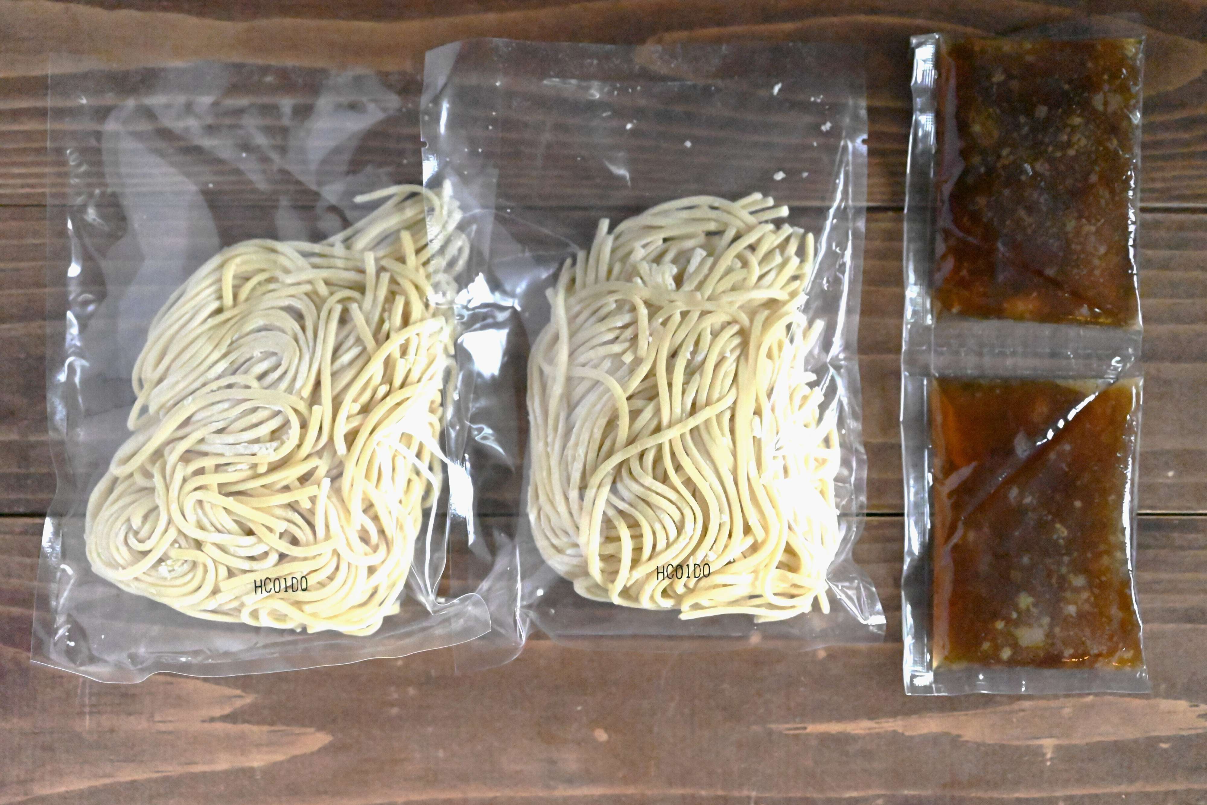 袋の中には生麺とソースが2人分入っています。