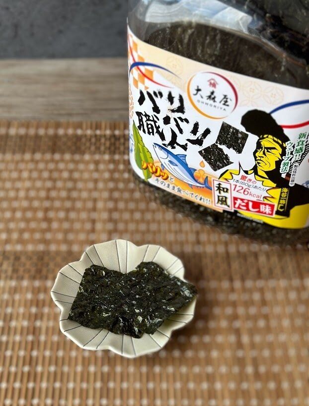 どちらも味付け海苔のような、甘じょっぱい味付けですが、今回の和風だし味のほうが、甘さが控えめでしっかりだしが香り、キリリとした後味が楽しめます。