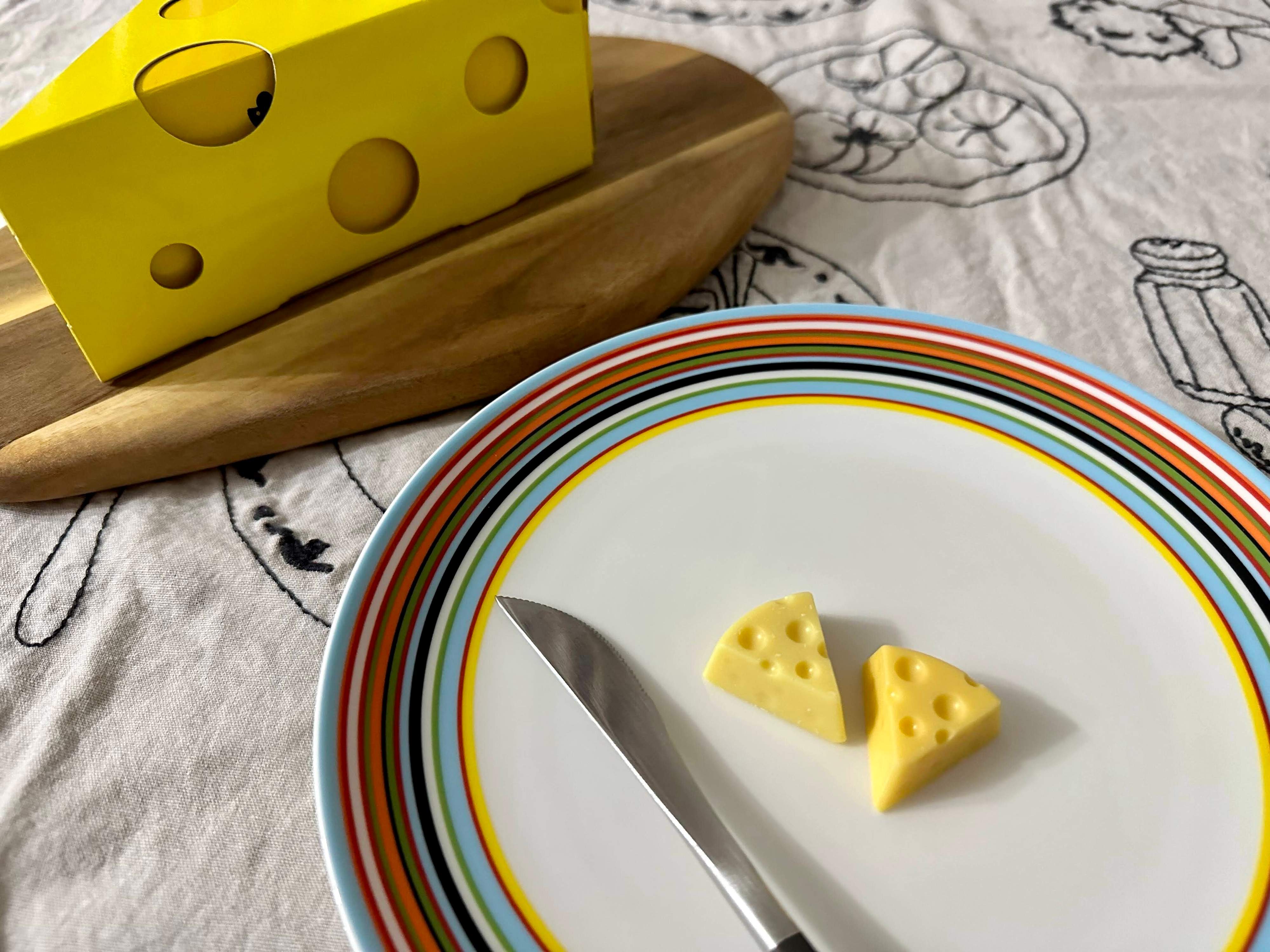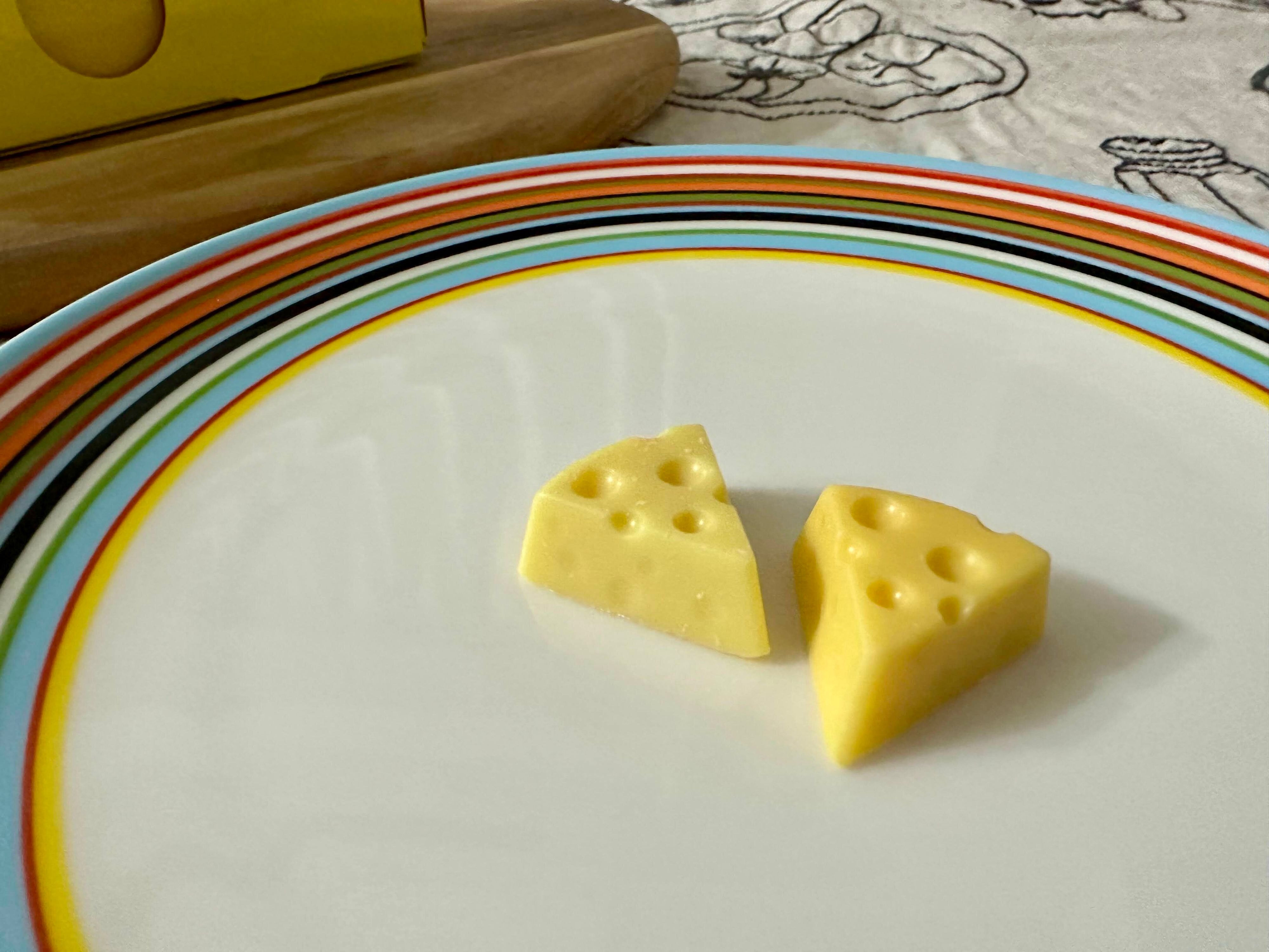 個包装から取り出すと…どこからどう見ても完全にチーズ!小さなサイズ感が最高にかわいく、眺めているだけでもワクワク楽しい気持ちになりましたよ。