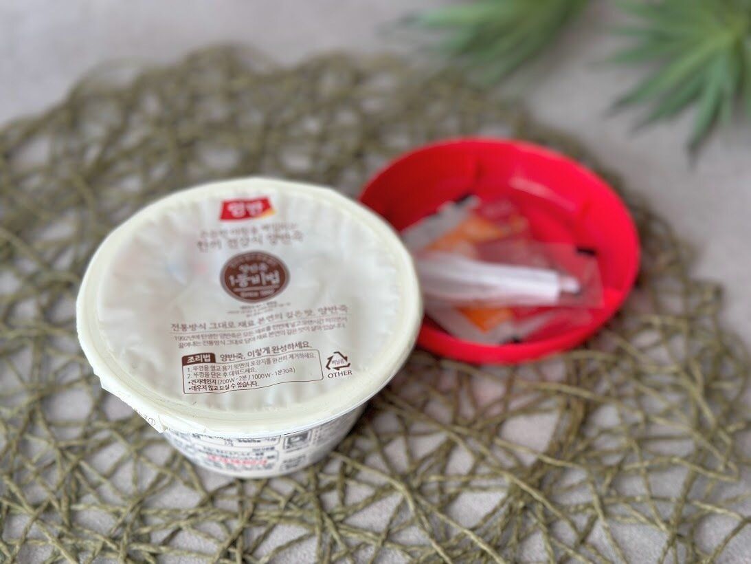 ・赤いフタを取ると内側に、トッピングとスプーンが入っているので取り出しておきます。