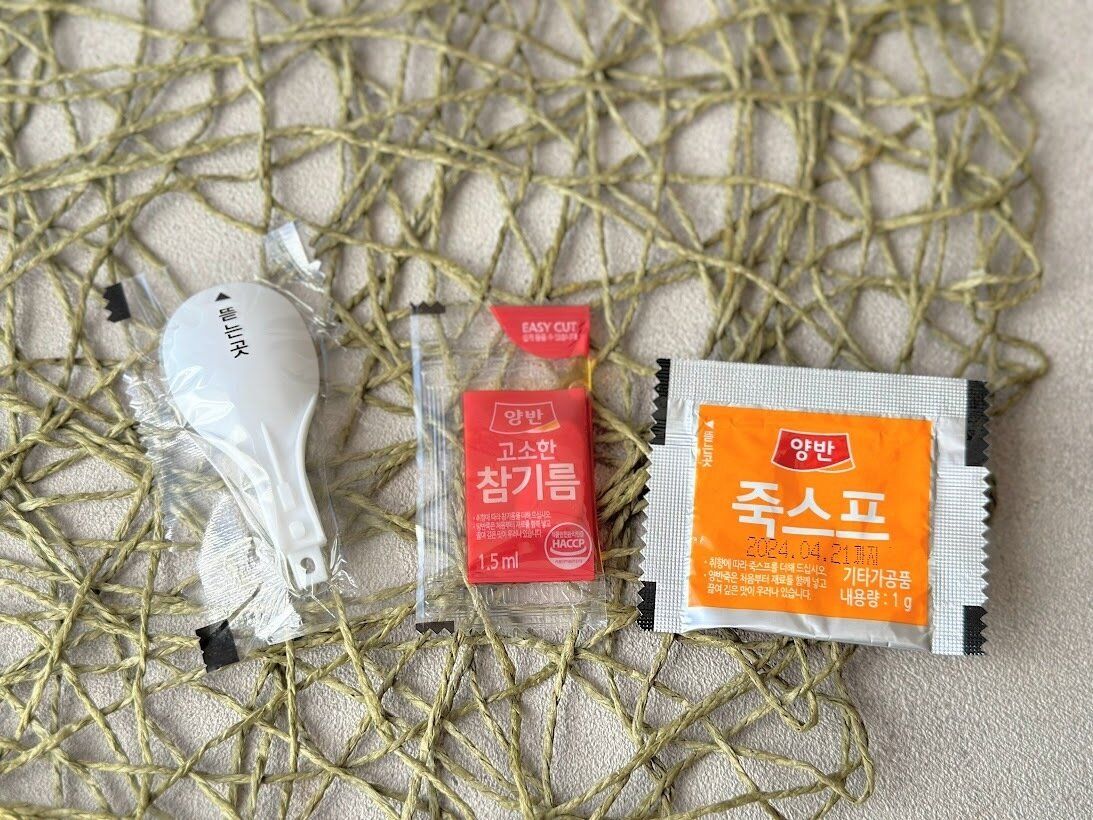 トッピングは、ラー油と、こまかい韓国のりがついています。
