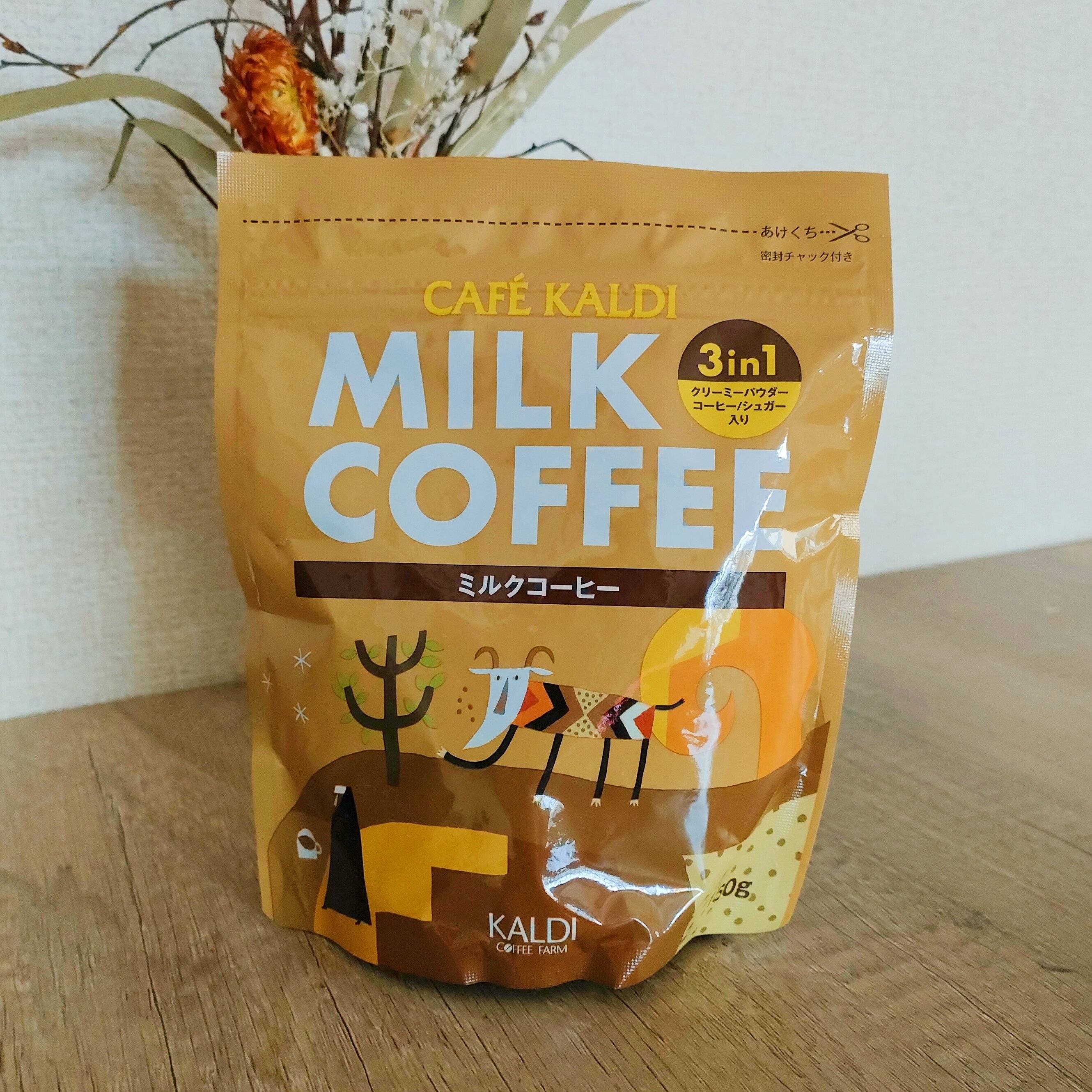 コーヒー、ミルク、お砂糖が全てバランスよく配合された3in1なので、カルディのあのコーヒーがすぐに味わえちゃうのです。