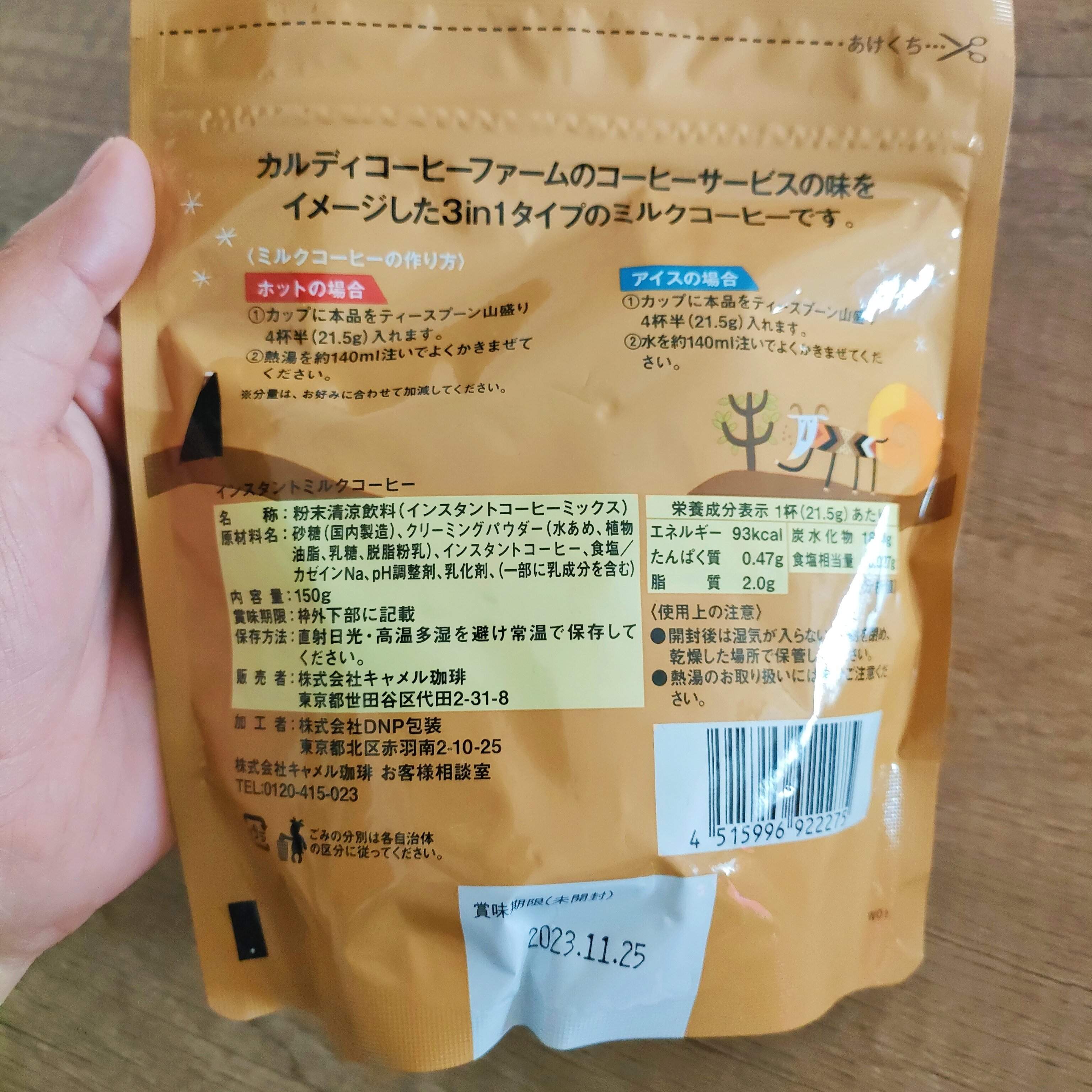 香ばしいカルディオリジナルコーヒーの味に、甘さが味わえるクリーミーなパウダーとお砂糖のブレンドがベストマッチ。