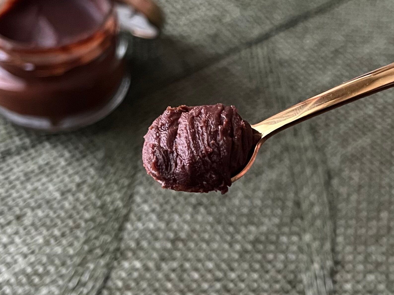 ちなみに、トーストしたパンと合わせると、そのまま食べたときとは少し違った味わいに。ヘーゼルナッツの風味は健在ですが、パンの香ばしさと相まってか、カカオのビター感が引き立ち、甘さのキレがよくなりました。