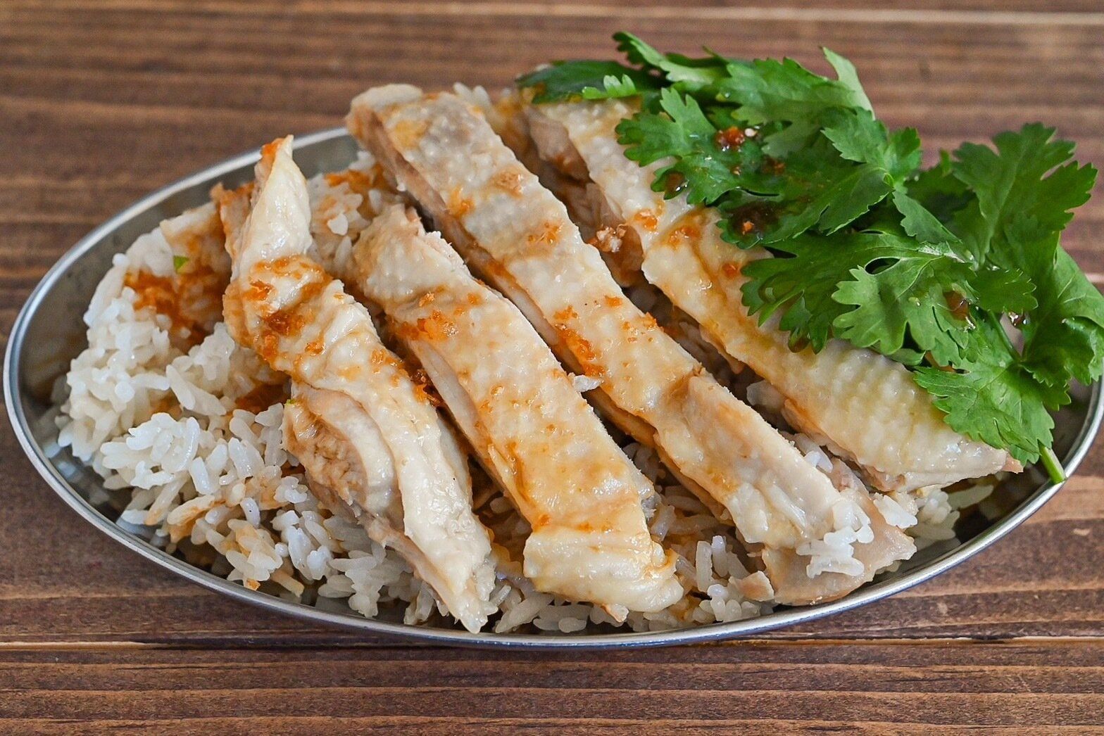 (5)炊き上がったら長ねぎは取り除き、鶏もも肉は取り出し、食べやすい大きさに切る。