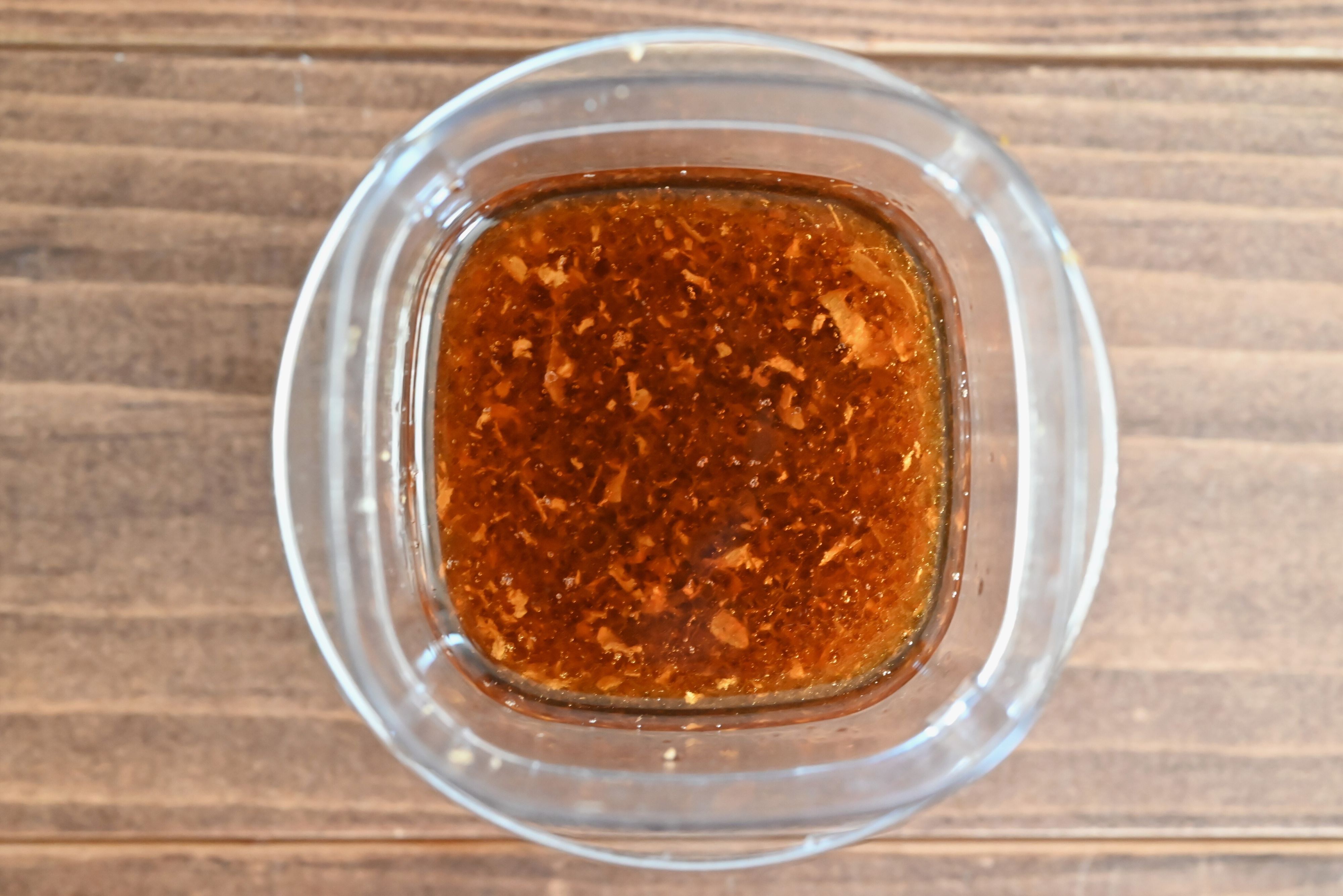 鶏がらスープの素、にんにく、しょうがを加えてひと混ぜし、鶏もも肉、長ねぎをのせる。