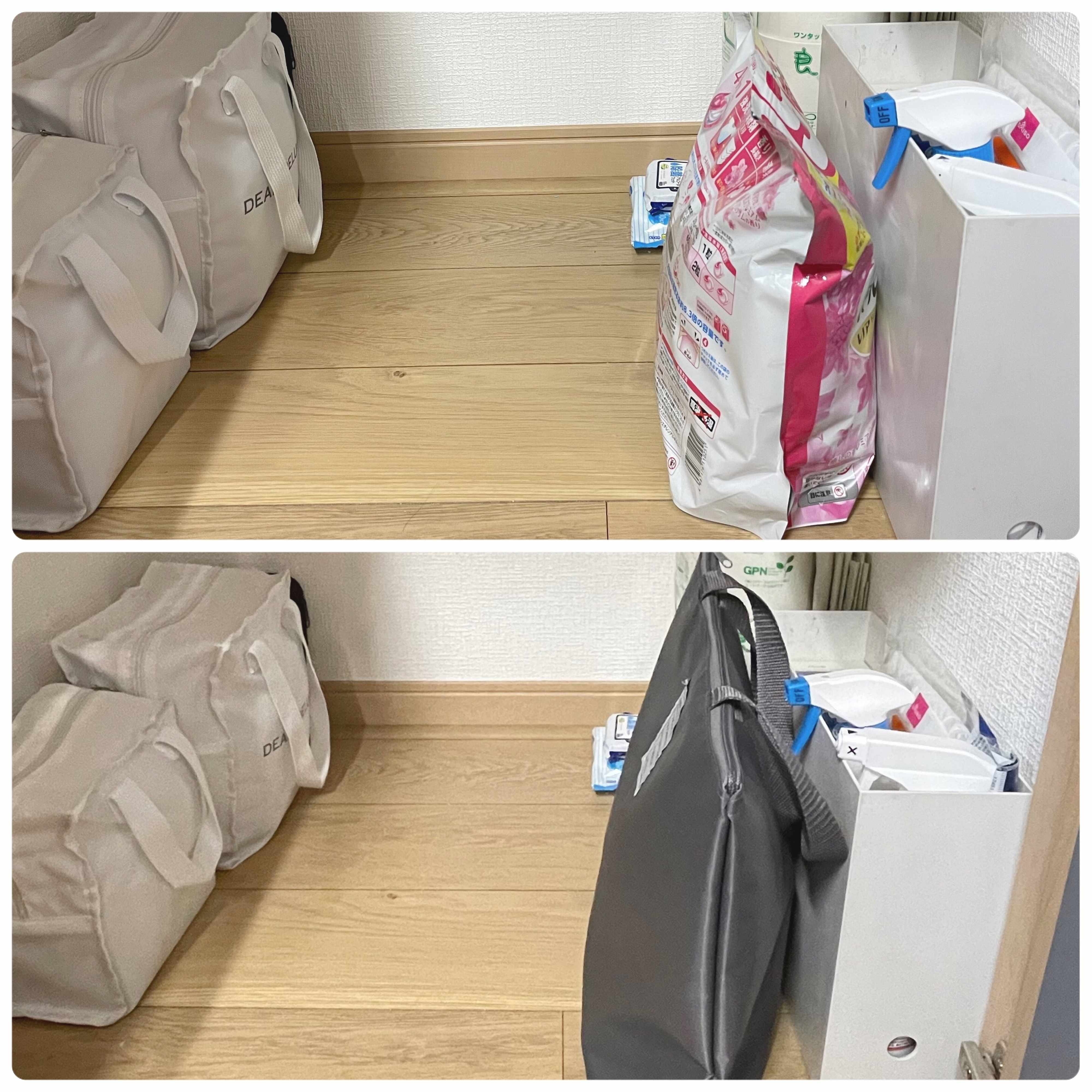 派手なパッケージが気になる日用品を入れたり、掃除用品をまとめて収納することもできます。