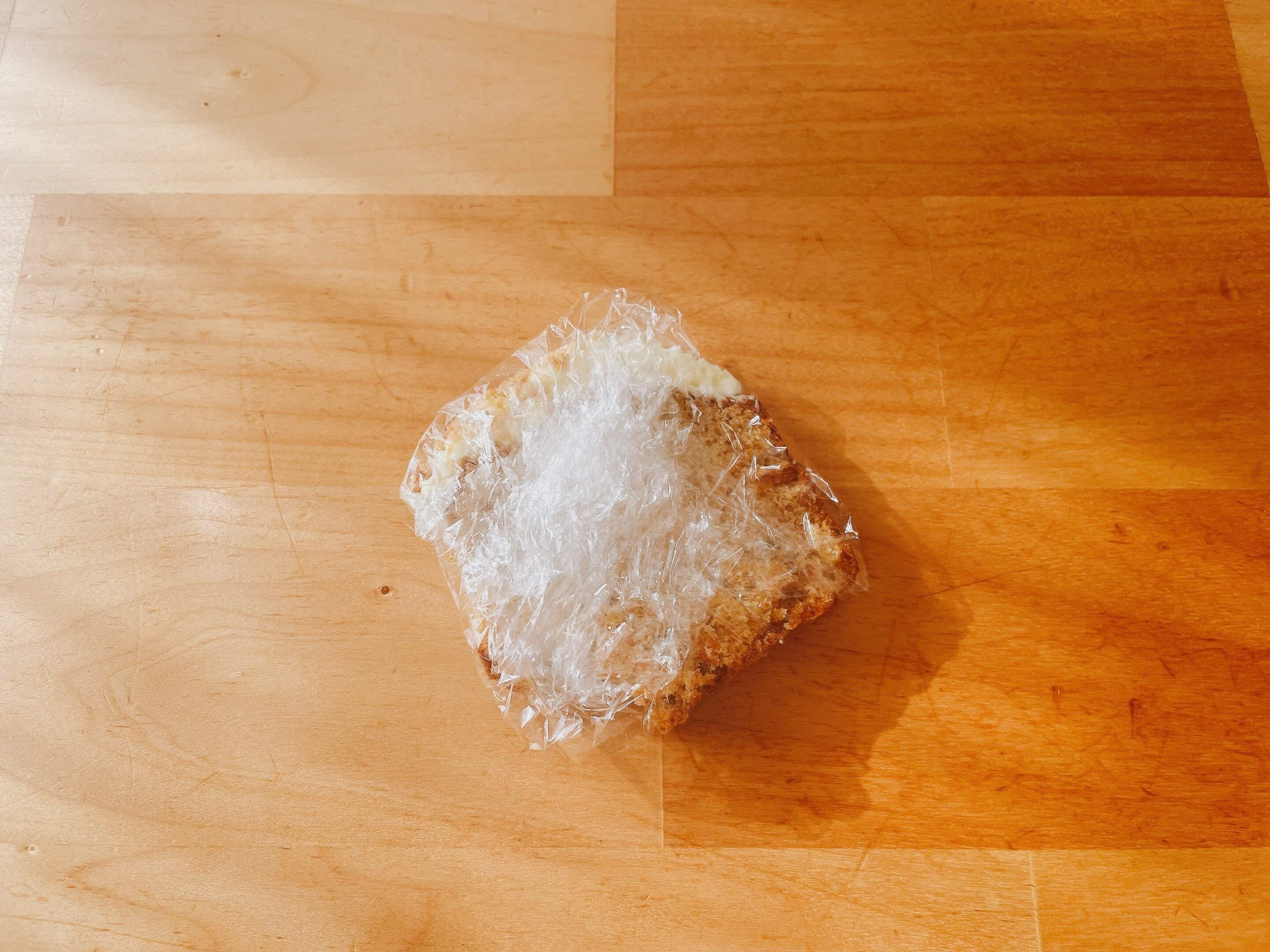 食べきれない分はカットしてからラップにくるんで冷凍して、食べる前に少し常温において食べられます。