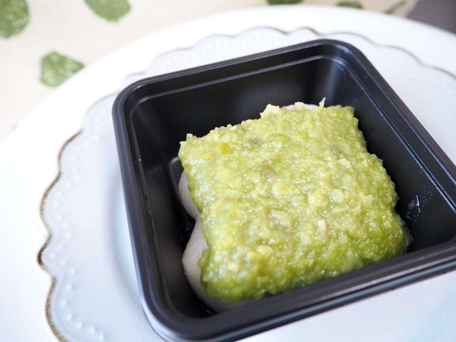 常温の和菓子コーナーに置かれていた、ひときわ鮮やかな緑色のずんだ餅。