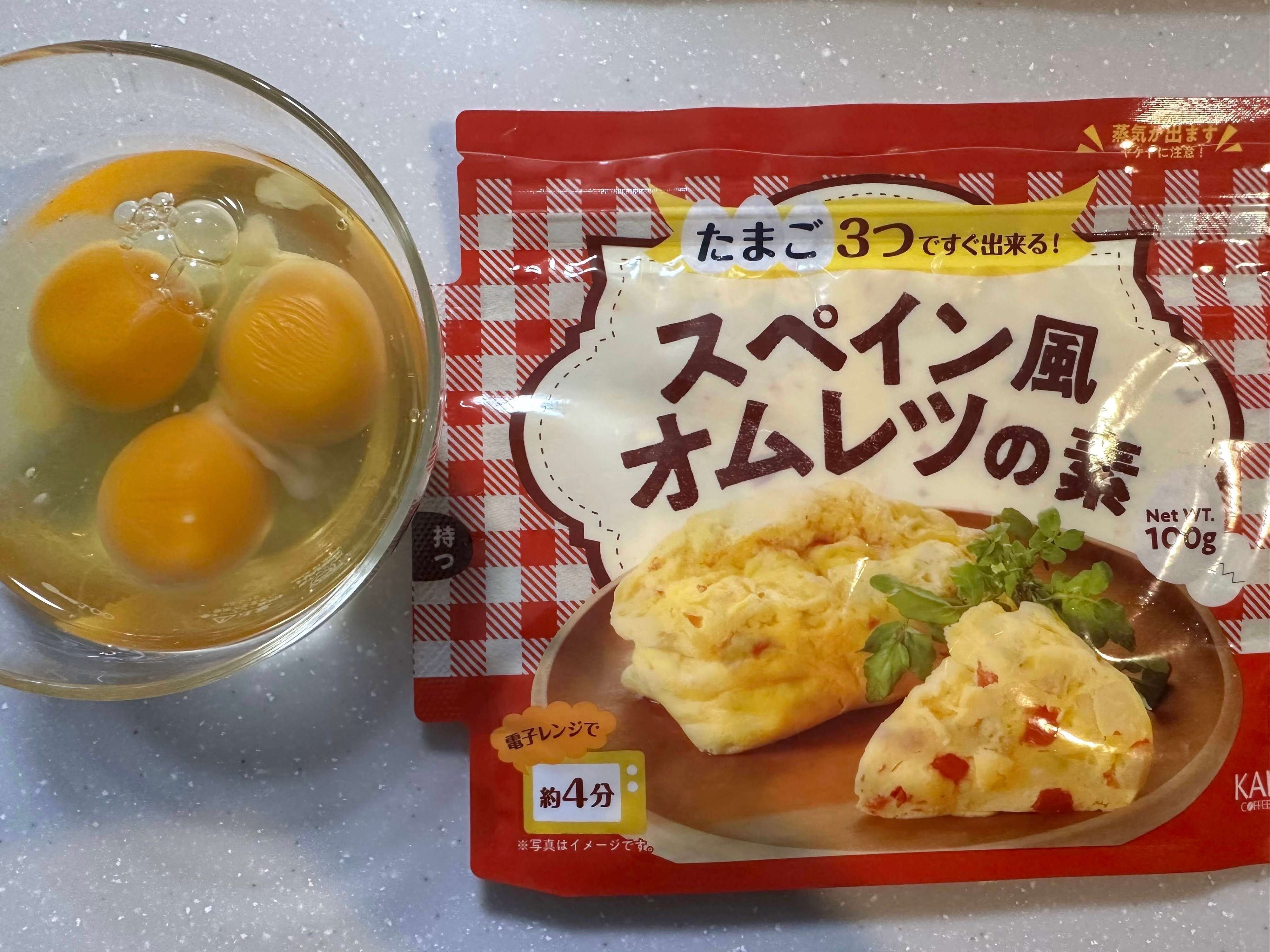 準備するものは「オムレツの素」と「卵3個」だけ。