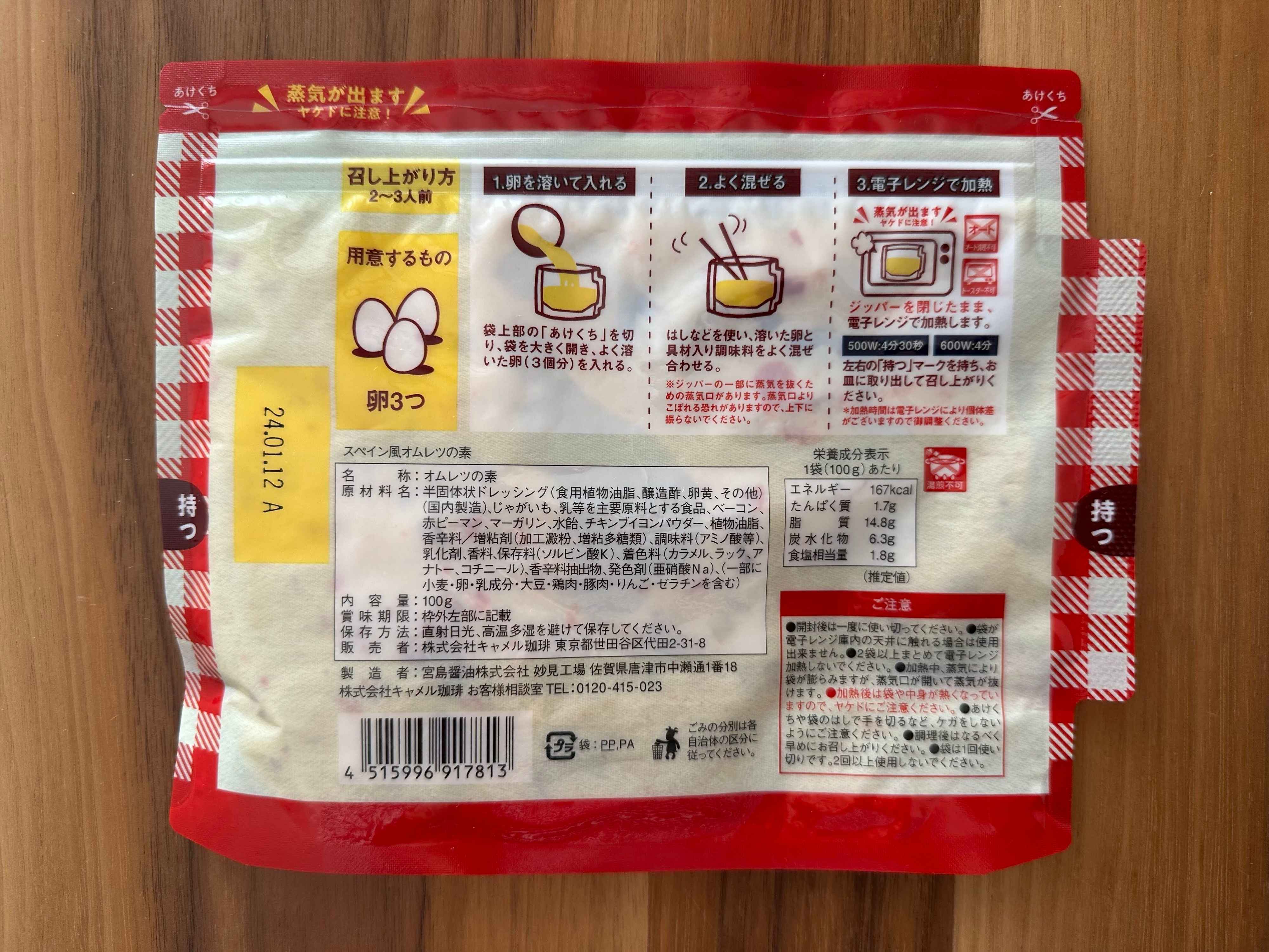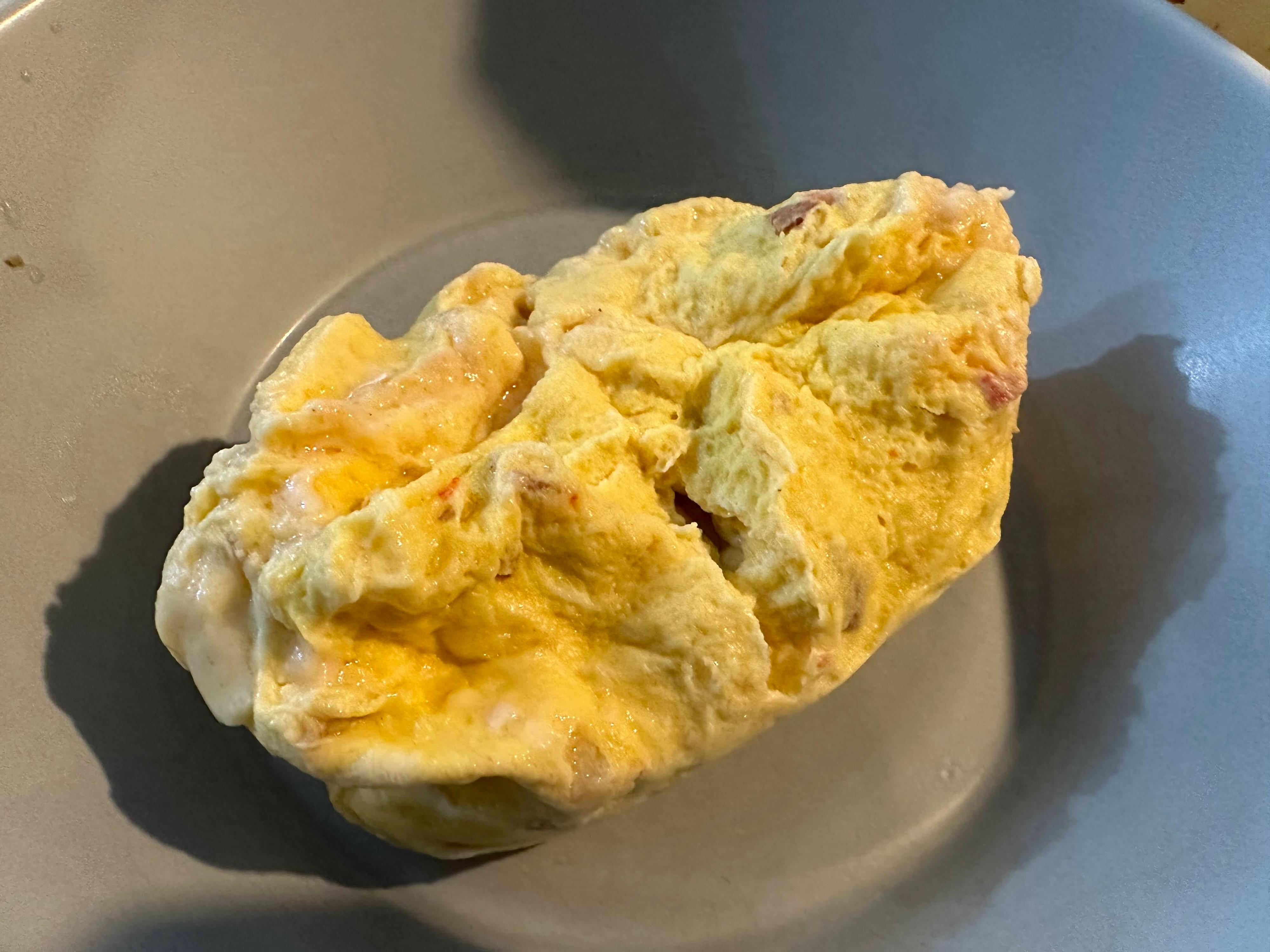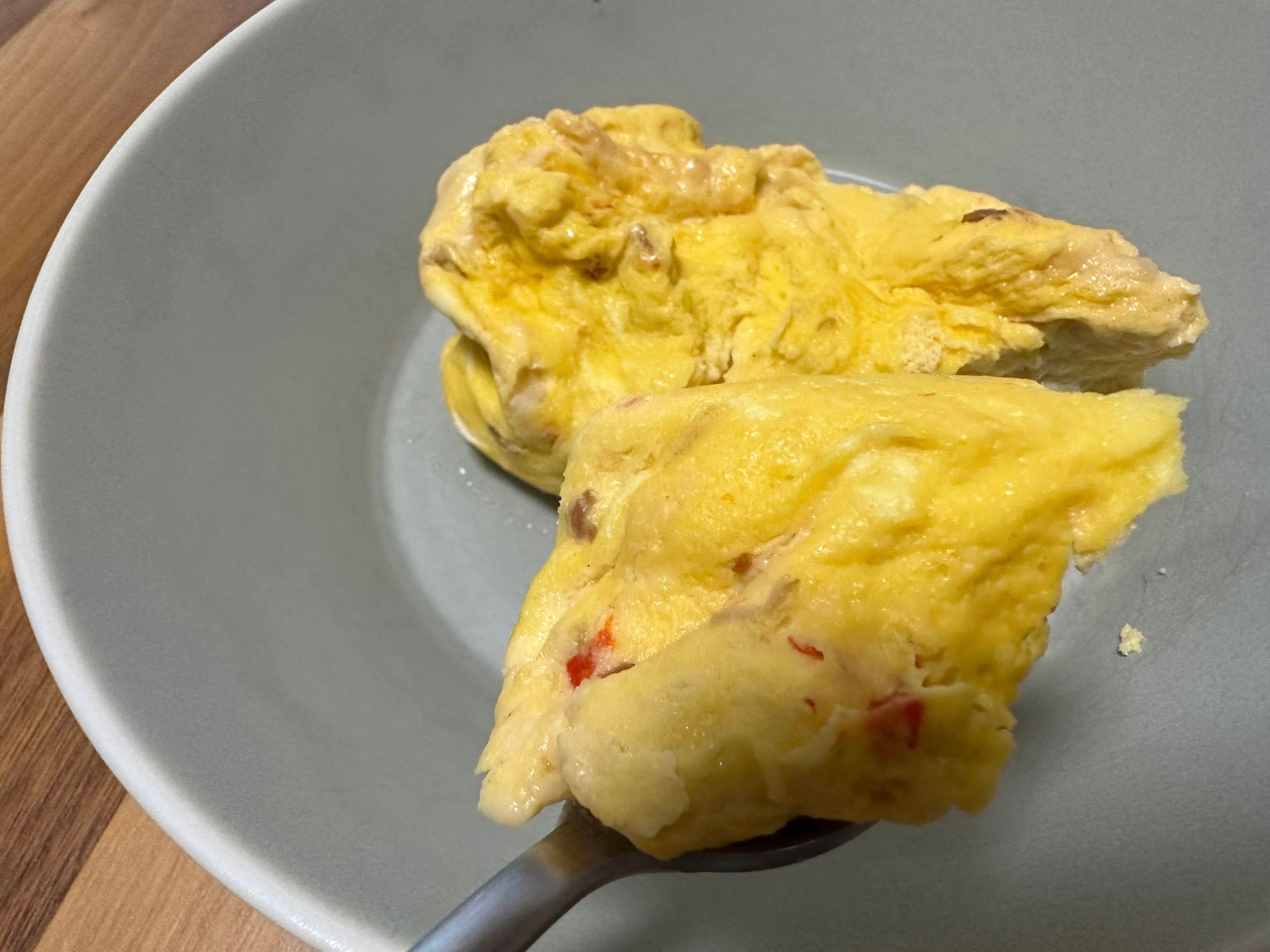 どんなものなのかと袋の中身をのぞいてみると、マヨネーズのようなテクスチャー。パプリカとマヨネーズのよい香りがしますが、この時点ではオムレツになるなんて想像もつきません。