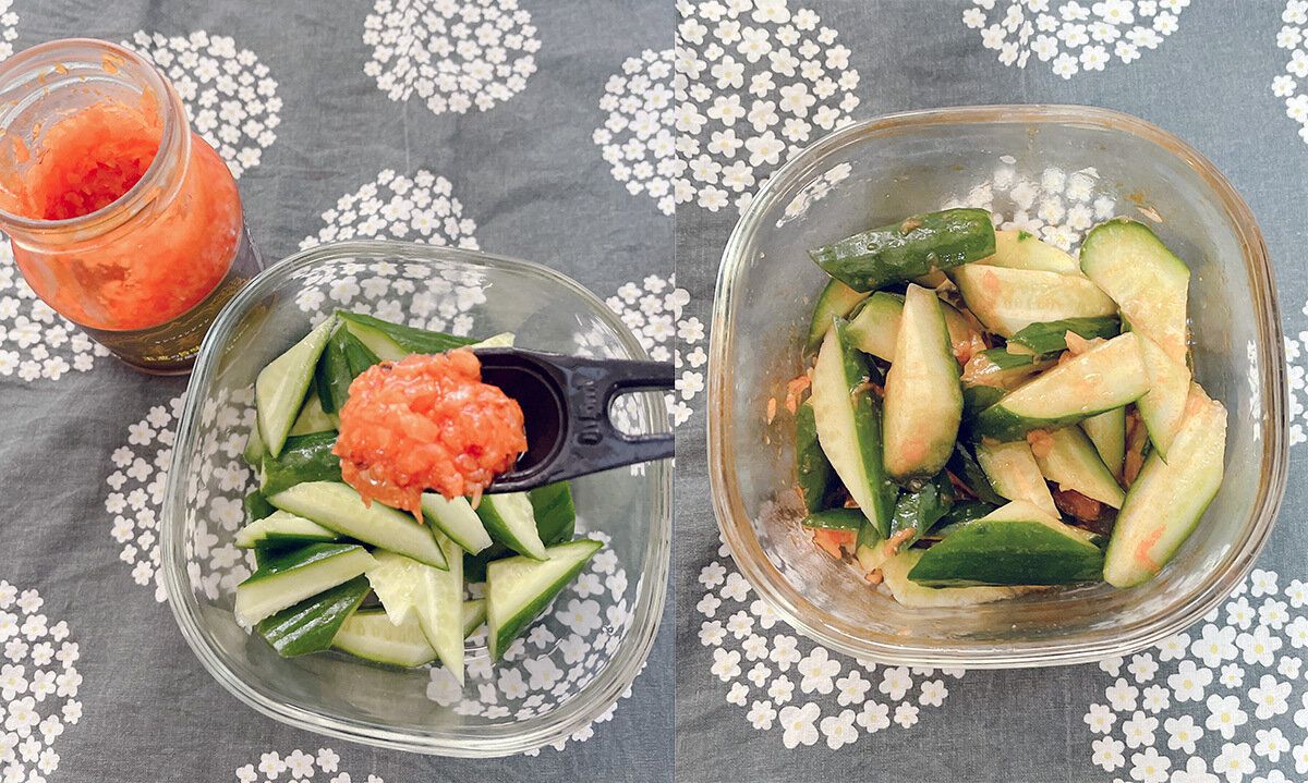 きゅうりに和えてみました。