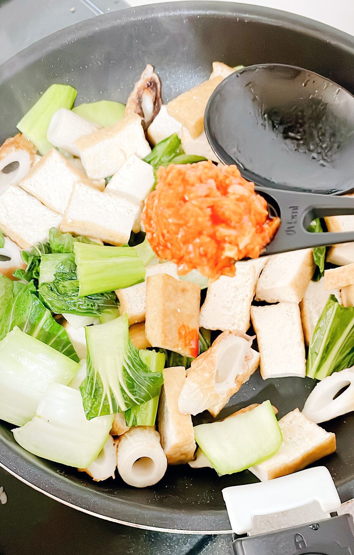 厚揚げ、チンゲン菜、ちくわの炒め物の味付けにも使ってみました。