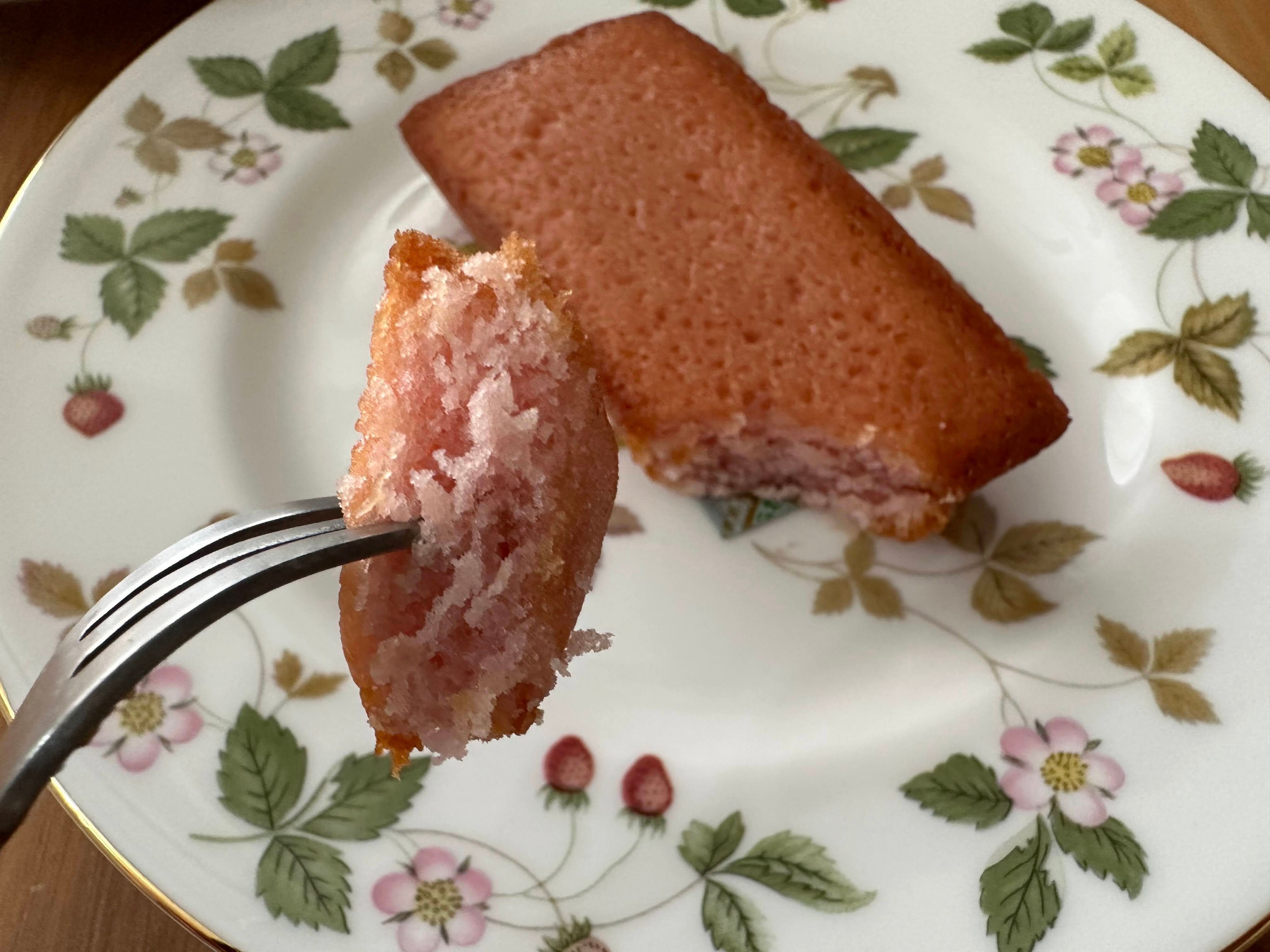 甘酸っぱい香りでしたが、食べてみると酸味ではなくホワイトチョコレートの甘みが強めのお味。苺ミルクのようなあま〜いフィナンシェはまさにティータイムにピッタリのご褒美スイーツだと感じましたよ。
