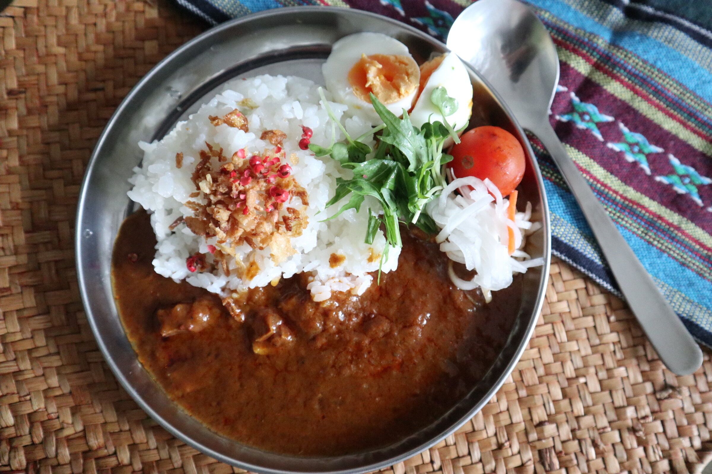 白ワインビネガーが効いている酸味のあるカレー。家庭ではなかなか出せない味を手軽に食べられます。