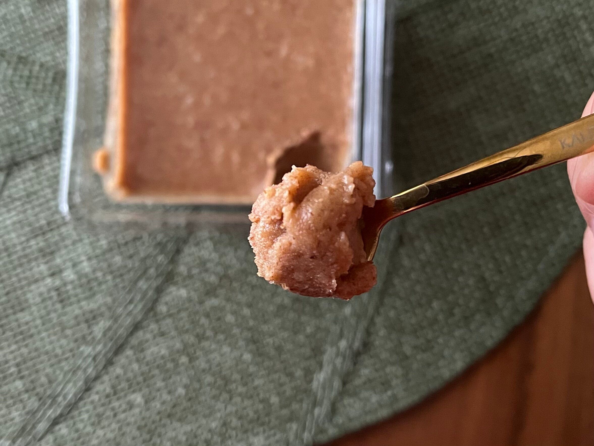 アーモンドバターは、アーモンドの粒が残っており、ざらっとした舌触りが特徴的です。