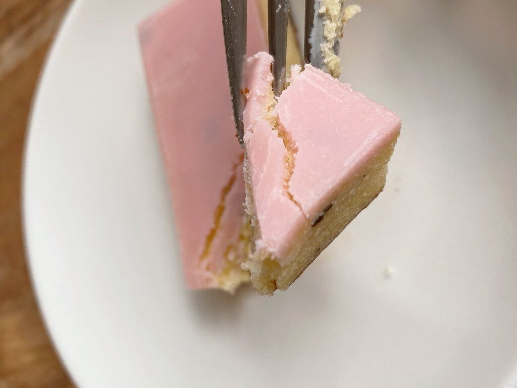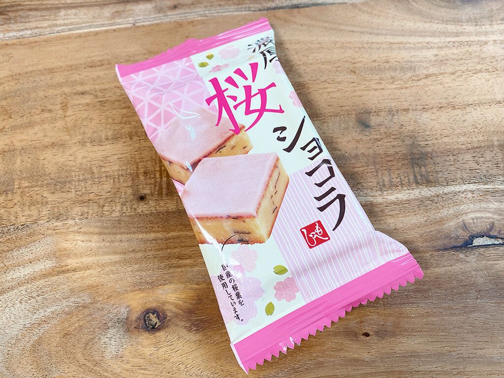 上には桜味のチョコレートがコーティングされています。