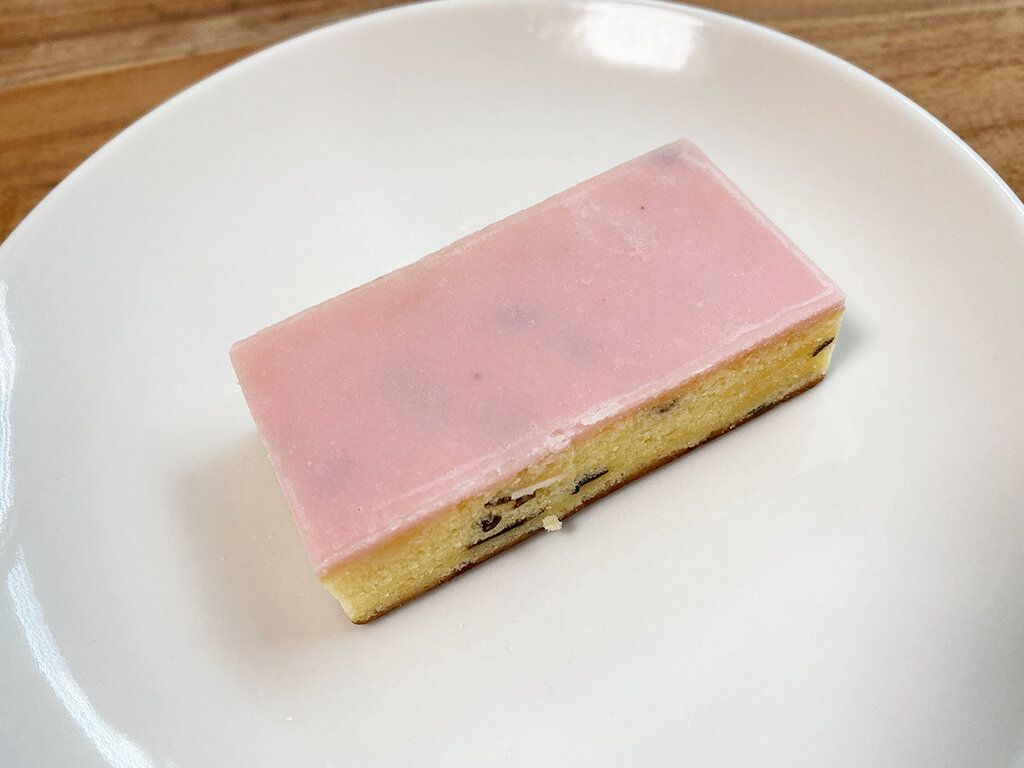 中は桜葉が入っていて、しっとりとしたブラウニーのような食感。