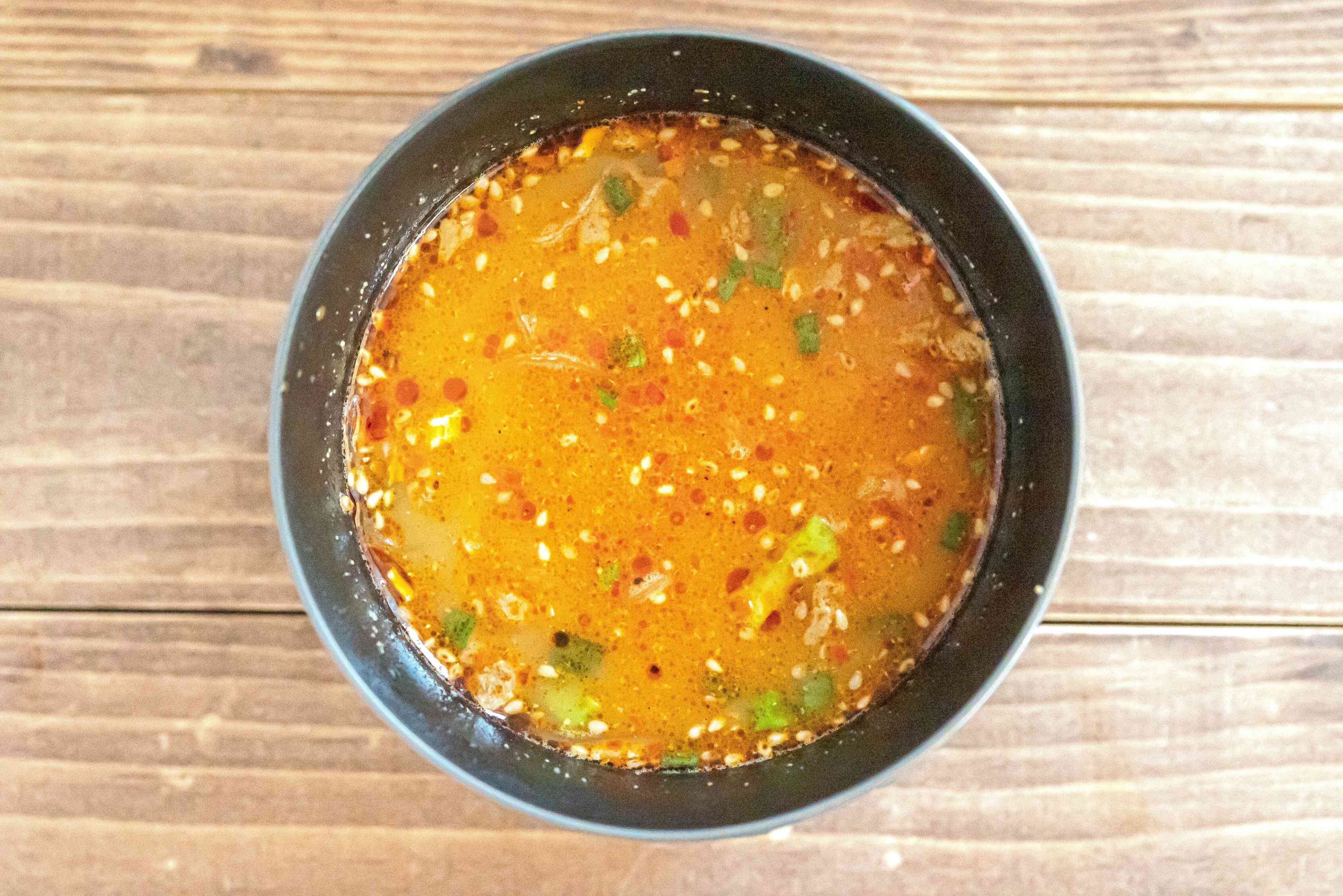 最後にごま油を垂らせば満足度のとても高い、食べるスープの完成です。