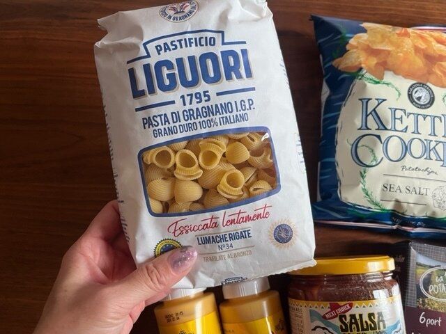カタツムリの殻のような形をした独特な形のショートパスタ。と書いてあります。