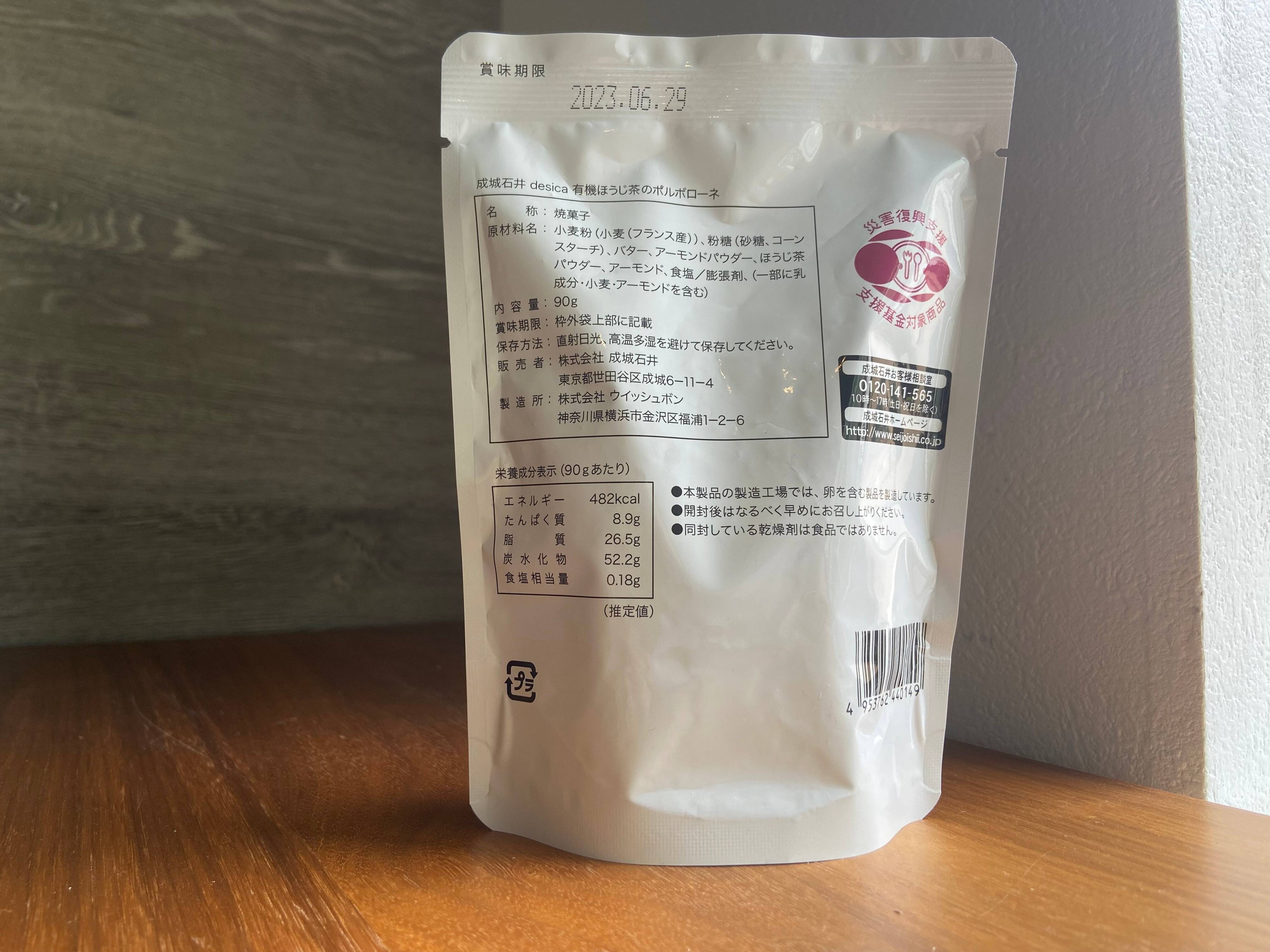 成城石井のdesicaシリーズ『有機ほうじ茶のポルボローネ』はほうじ茶が濃いめでおいしい。