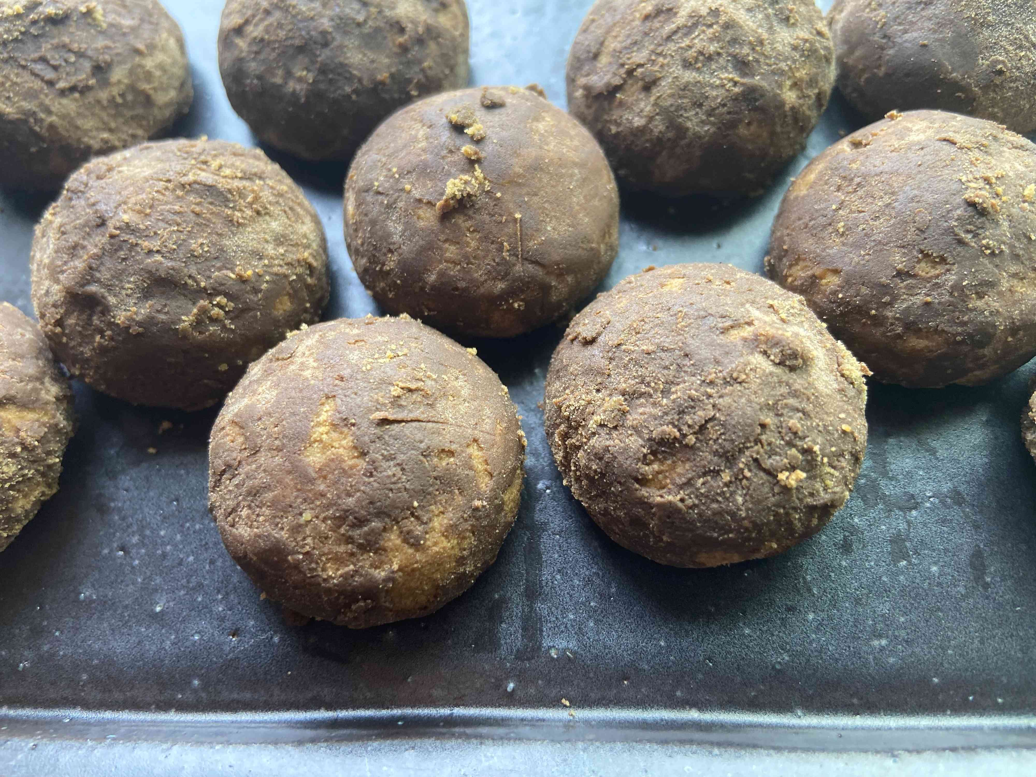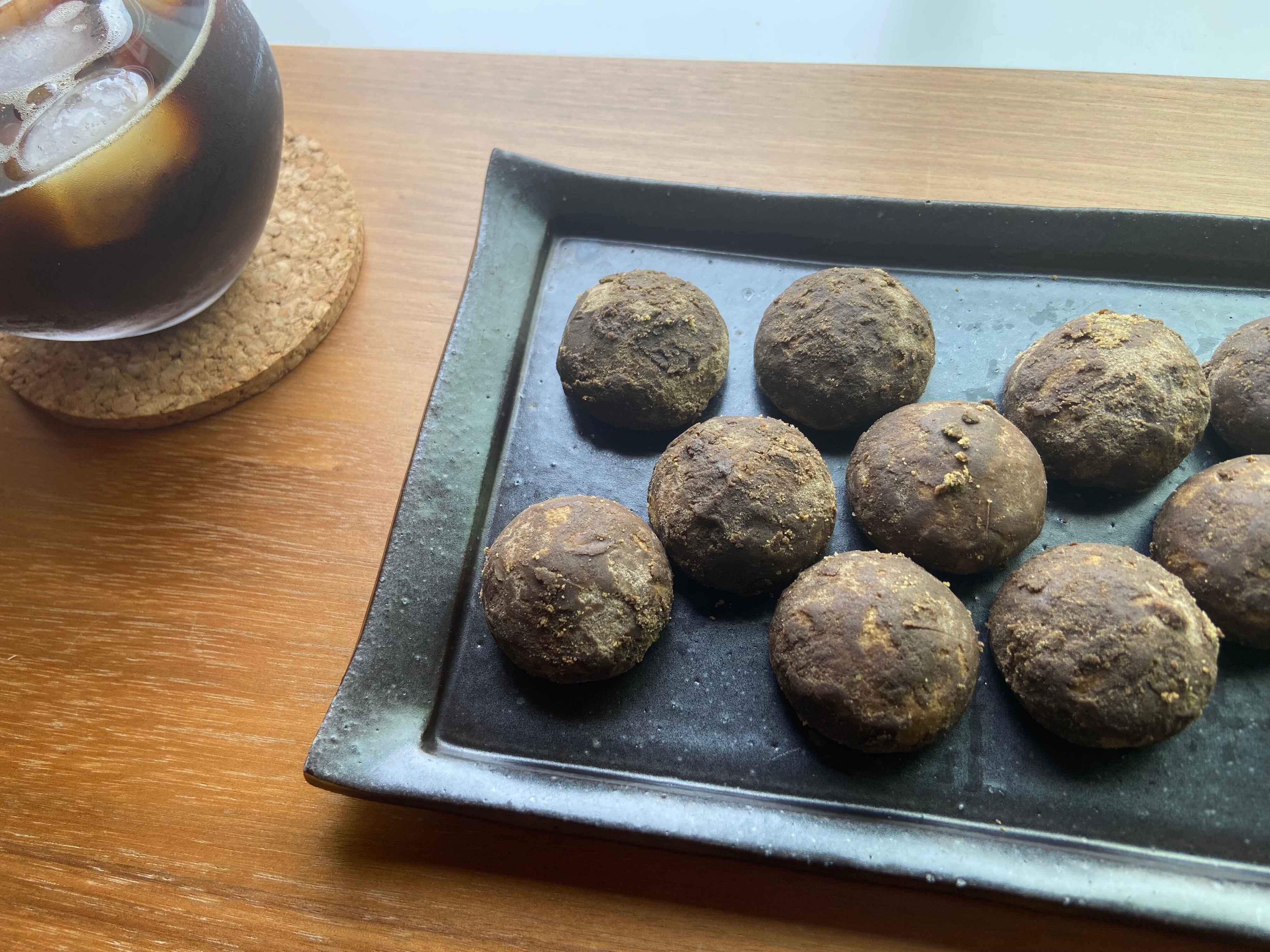 見た目も濃い焦げ茶色で、有機ほうじ茶パウダーと粉糖がたっぷり。
