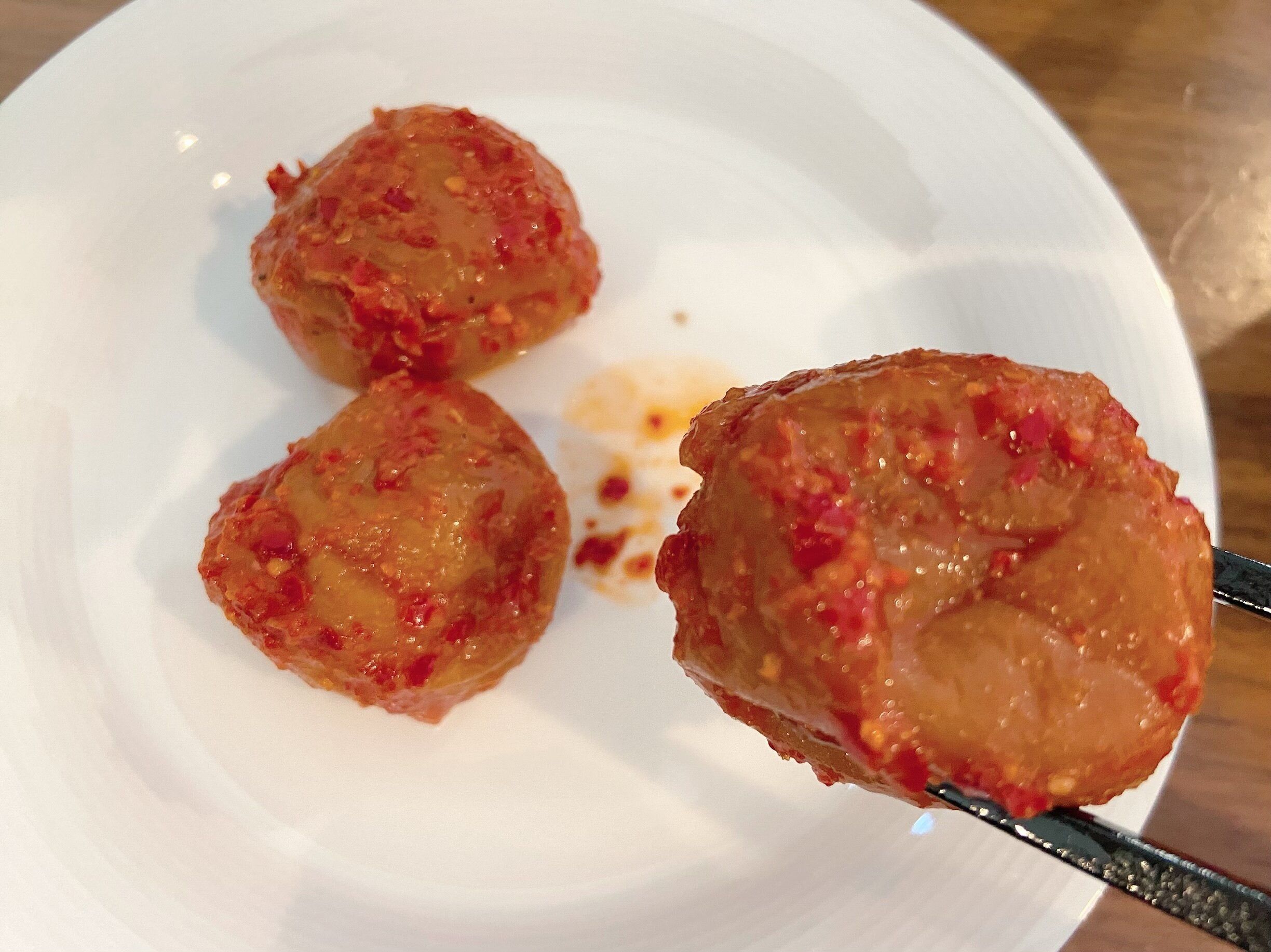 大粒の南高梅のキムチはヤンニョンをベースにした特製だれで漬けているとのこと。