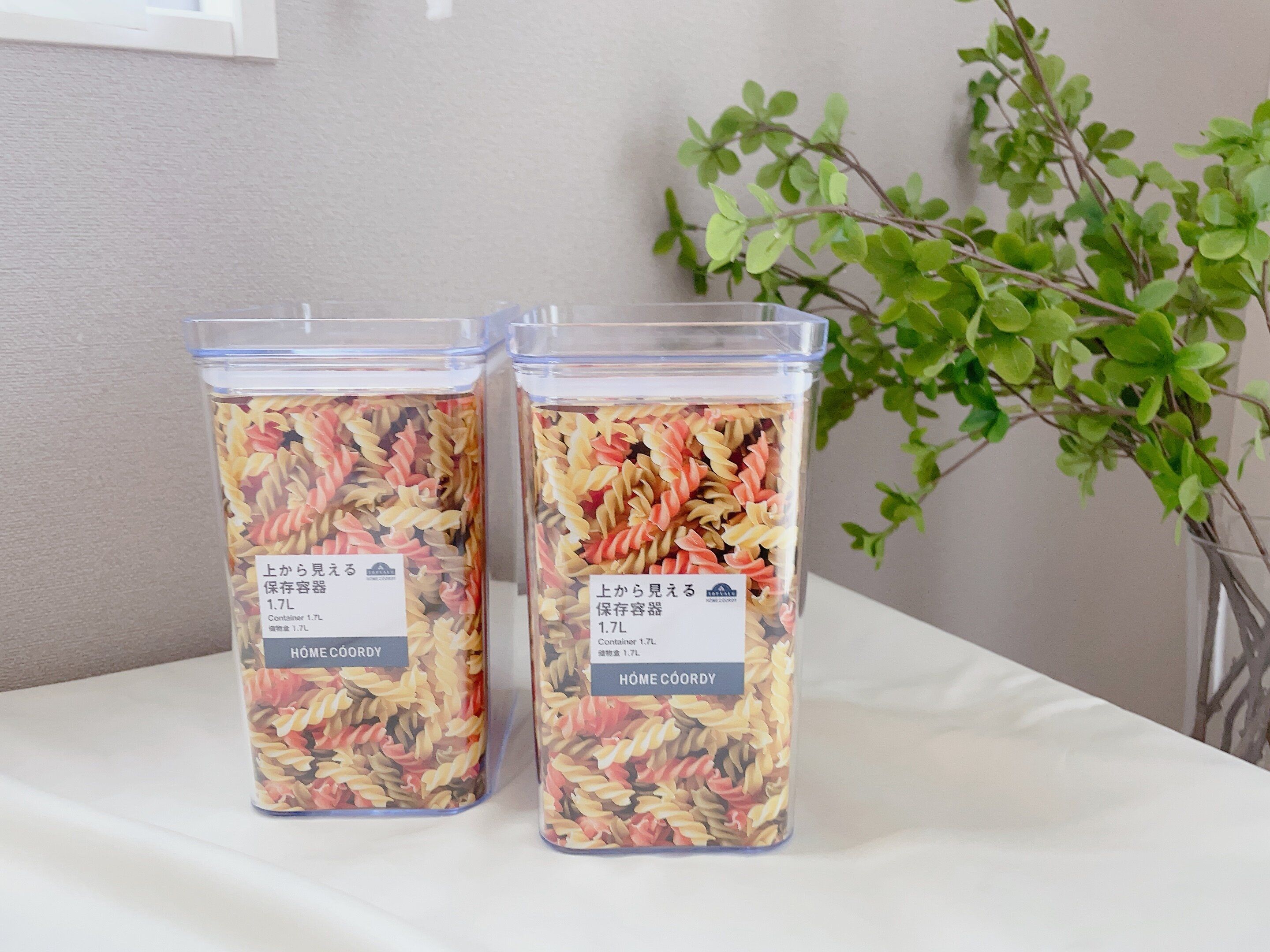 サイズは全部で4サイズ!1.7L以外は2段まで重ねて使えることもできるので、わが家ではコーヒーやお茶パック、個包装のお菓子などさまざまな用途で使い分けています。