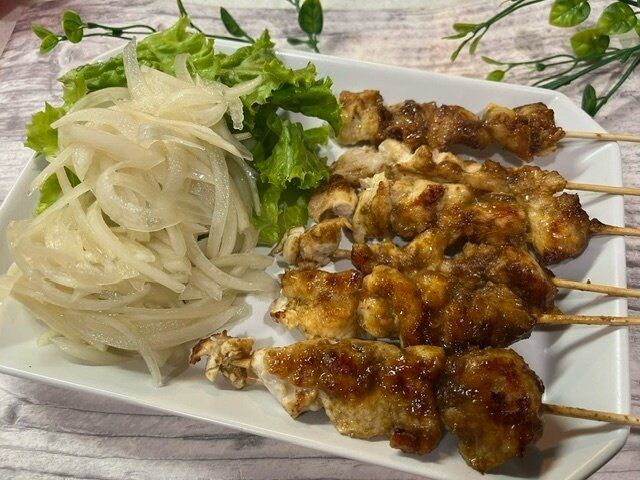タイ風焼き鳥の素、と書いてあるので鶏胸肉を使って焼き鳥を作ってみました。