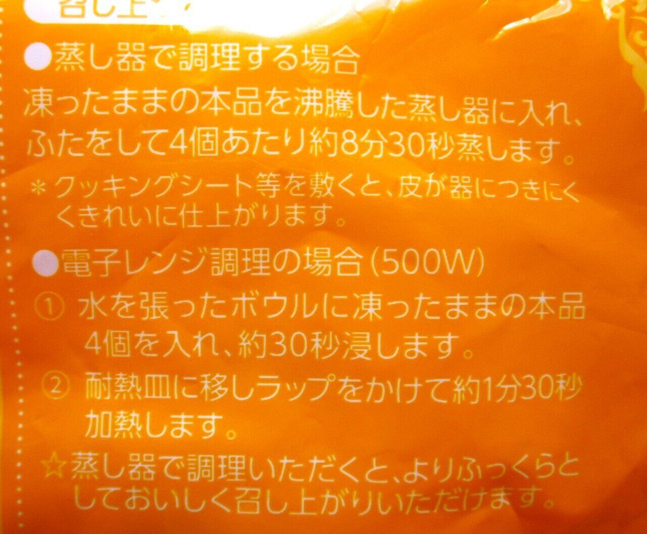 パッケージ裏の調理方法には、電子レンジまたは蒸し器で作ると書いてあります。蒸し器で作るとふわふわになり、失敗が少ないのですが、蒸し器を出すのが面倒な筆者は電子レンジで作っています。加熱しすぎると固くなるので、心配な方は初めのうちは時間を少なめにして蒸してみるとよいかもしれません。