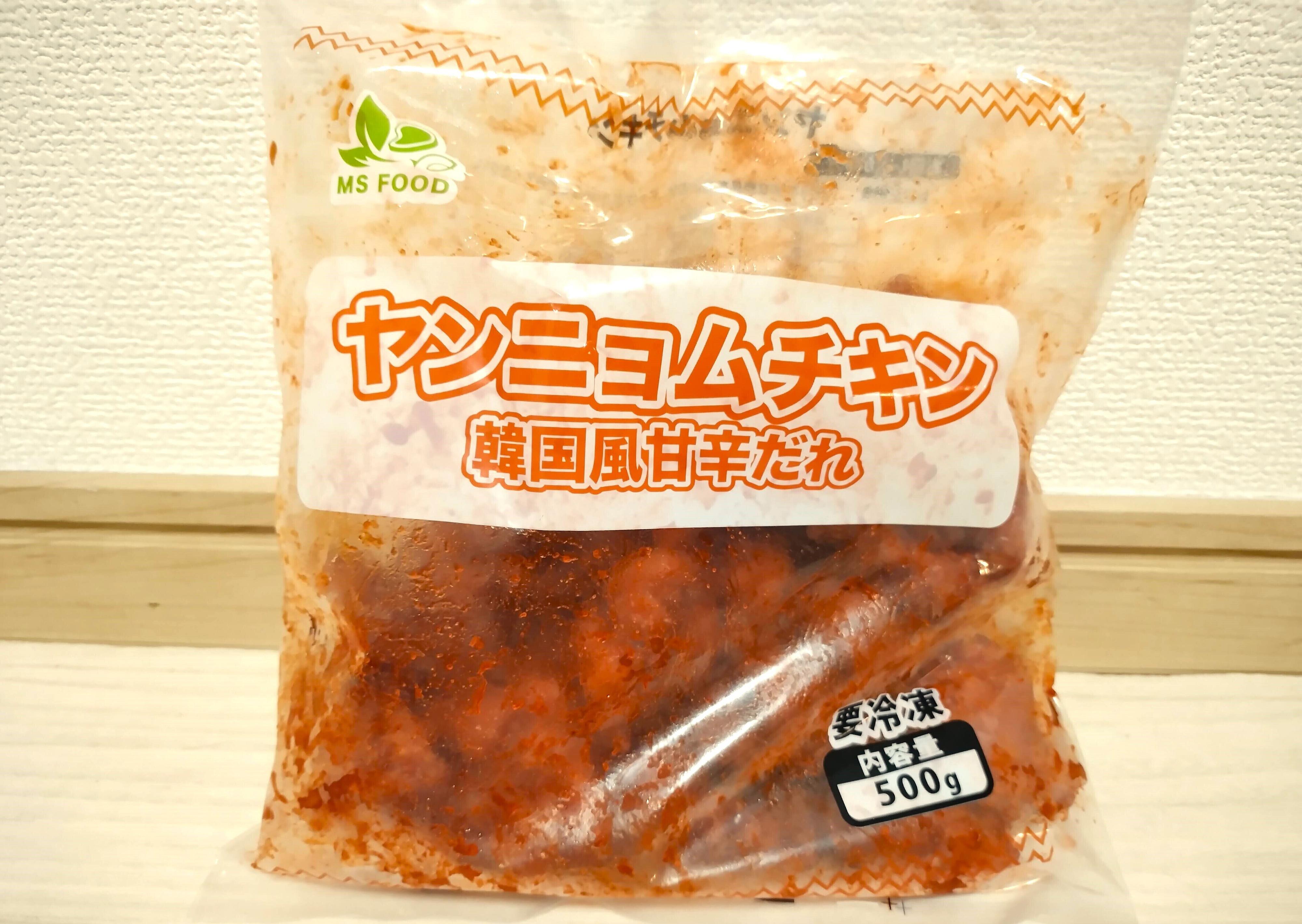 業務スーパーで販売されているヤンニョムチキンは、500g入りで594円(2024年7月購入時)です。