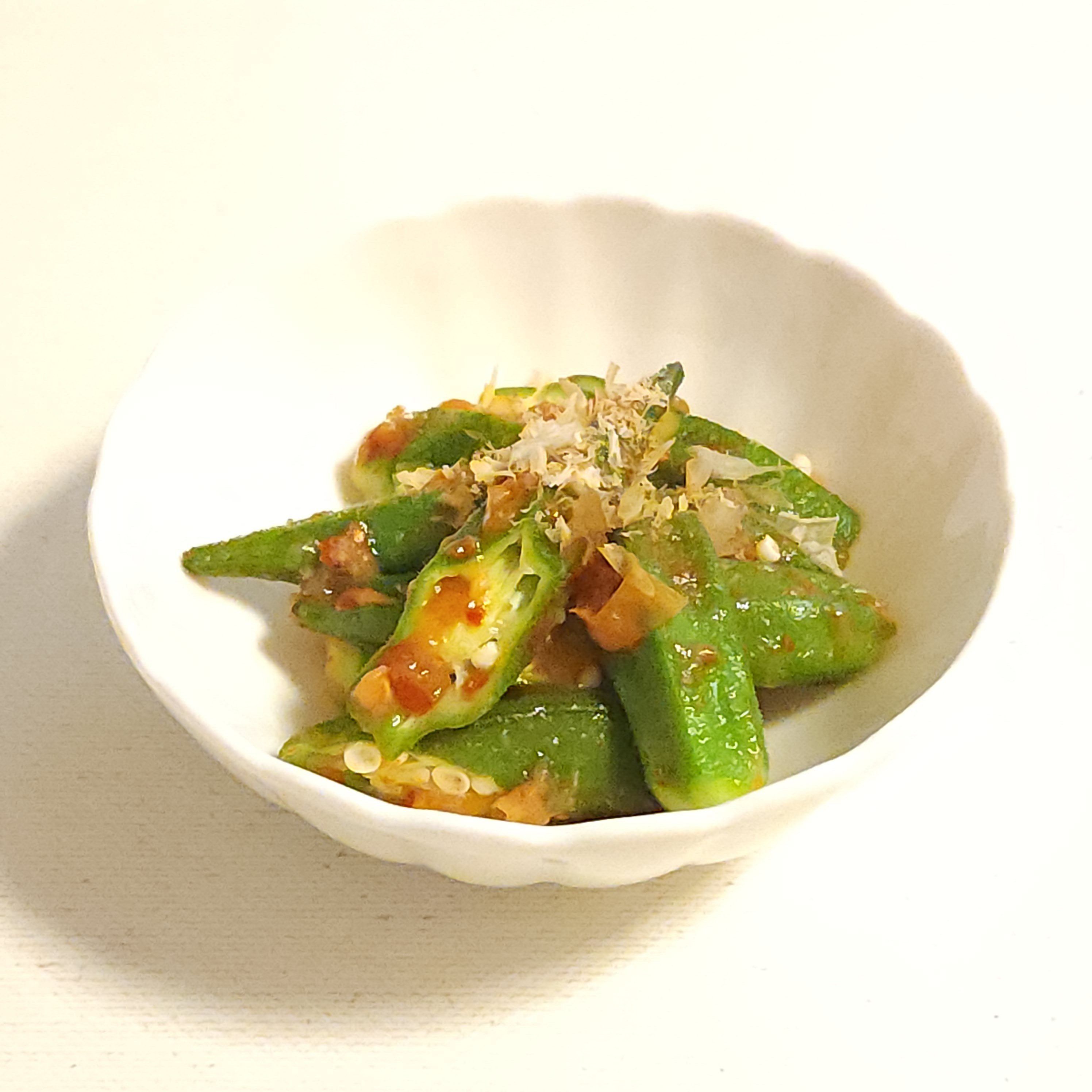 また、かつおぶしとの相性がよく、オクラや長芋、納豆のようなネバとろ食材につぶした梅干しキムチとかつおぶしを混ぜるだけで、簡単副菜が一品できあがります。暑くて食欲がなくなりがちな時期に、さっぱりとした一品となるのでおすすめです。