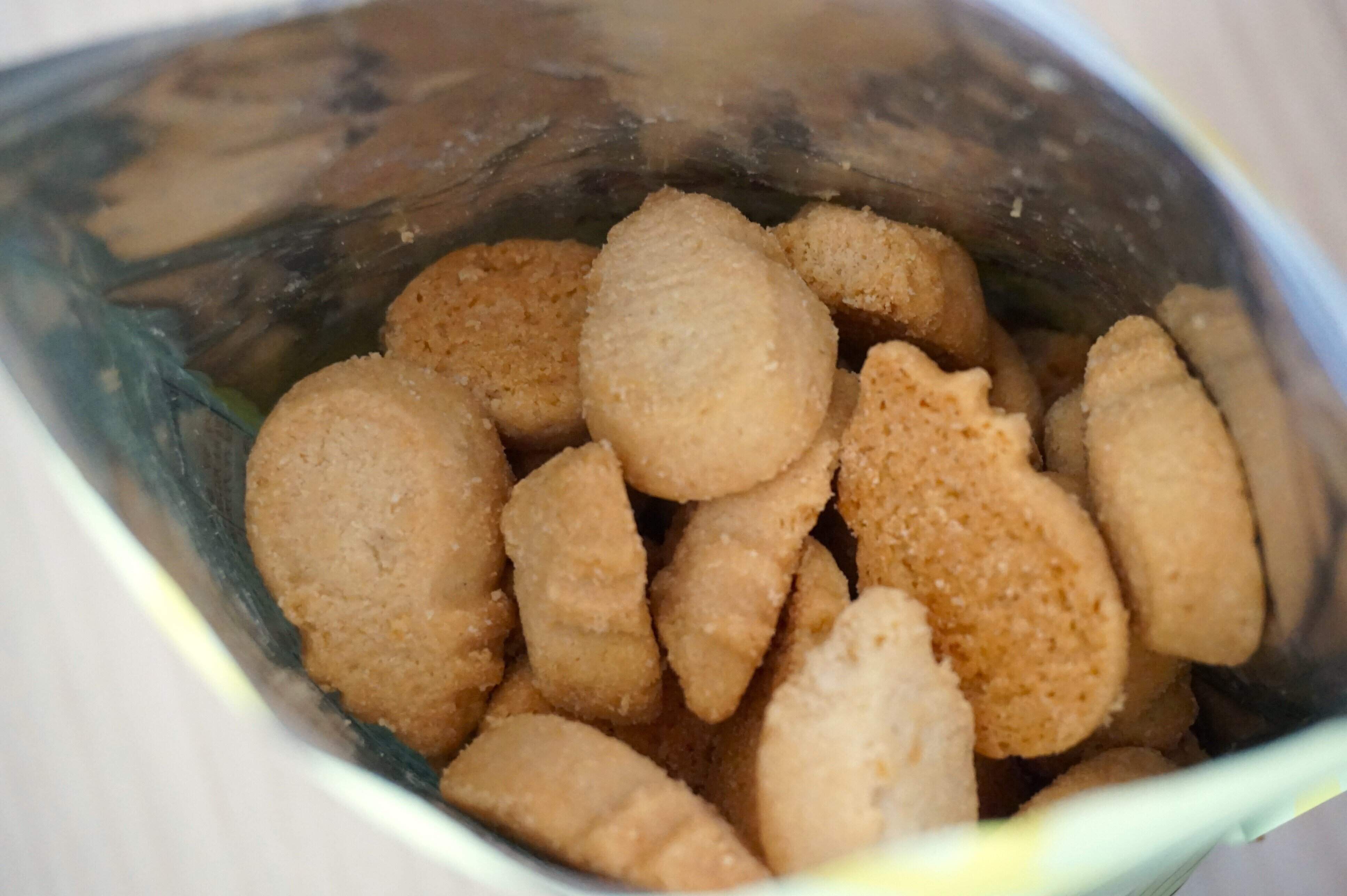 ほかのホノルルクッキー同様に、ショートブレッドクッキーらしいほろほろした食感です。パッケージに乗っているホノルルクッキーは、葉っぱもしっかり形がありますが、実際にはここまできれいな形のクッキーはあまり入っていないかもしれません。