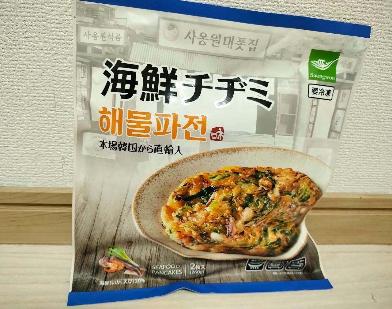 続いて、こちらの「海鮮チヂミ」。価格はチヂミ2枚入りで507.6円(※2025年4月筆者購入時)です。フライパン・電子レンジ・オープントースターで調理が可能ですが、筆者のおすすめはフライパン調理です。油を敷いて焼くことで、表面がカリッとしてさらにおいしくなりますよ。