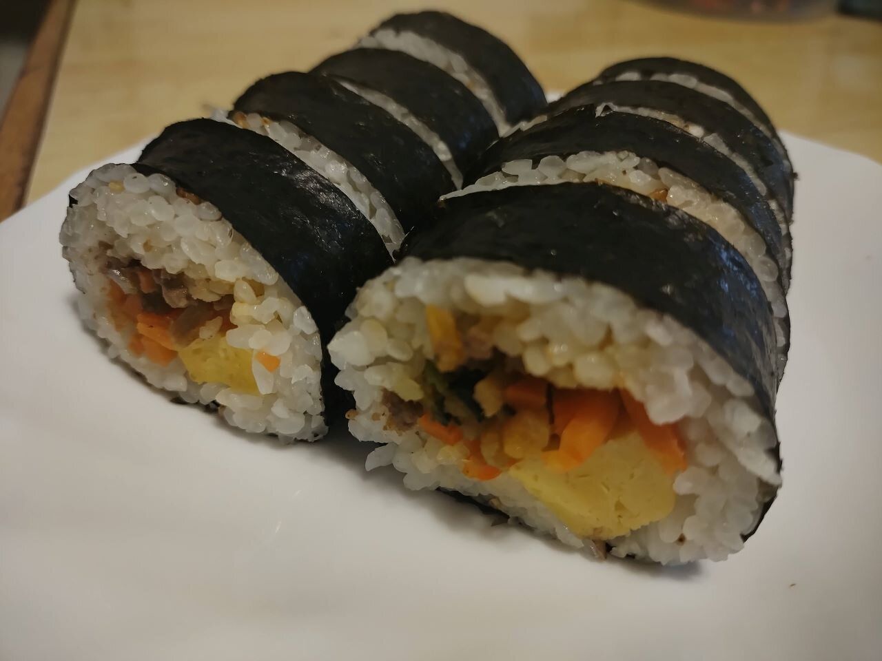こちらは韓国直輸入ではなく国内で製造されたキンパとのことですが、ごま油が香る本格的な味わいのキンパです。